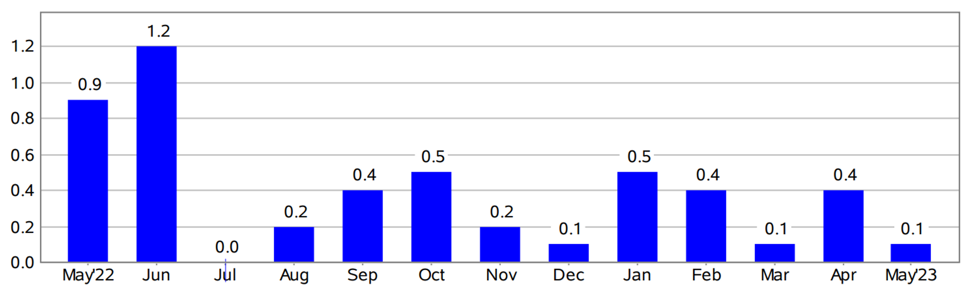 <그림 1> 미국 소비자물가 상승률(전월 대비, %)
