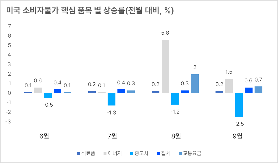 반면 그간 불안한 모습을 보이던 중고차 가격이 급락하고, 식료품 가격도 안정세를 이어가면서 근원 인플레 안정으로 이어졌습니다. 다만 최근 조금씩 상승 탄력이 둔화되던 집세 물가가 다시 불안한 모습을 보인 것이 걱정스러운 부분입니다.