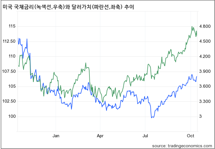 따라서 당분간 미국 시장금리의 고공행진 속에, 달러 강세 흐름이 이어질 것으로 예상됩니다.
