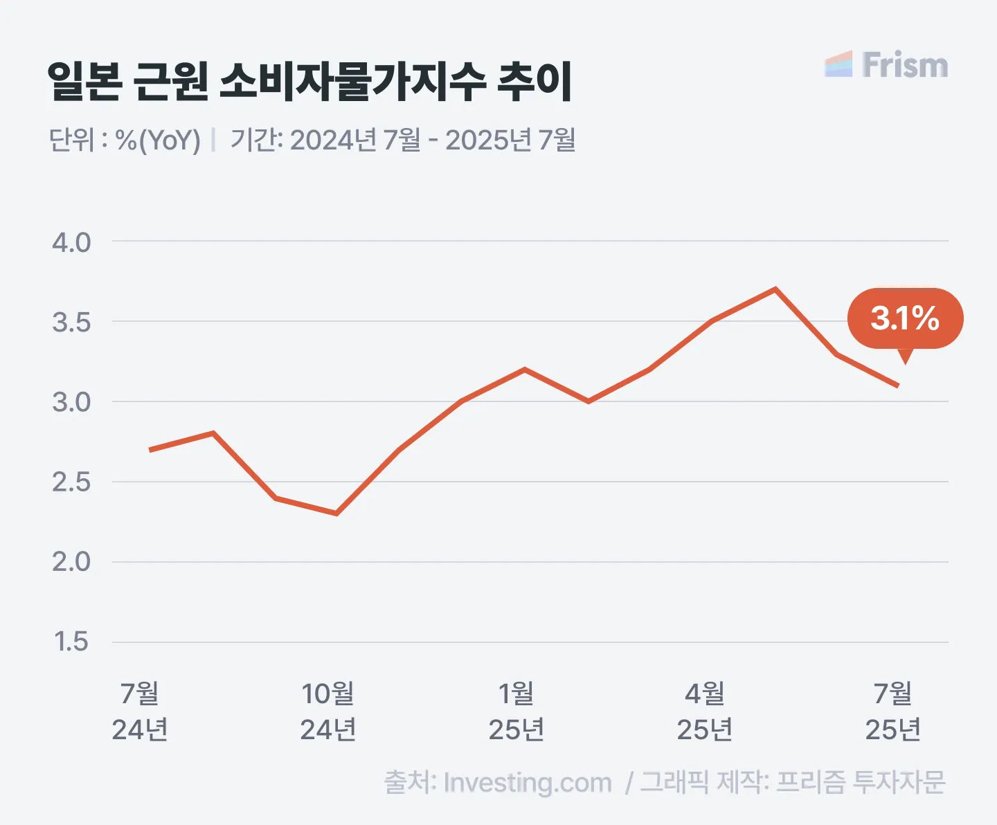 ์ผ๋ณธ ๊ทผ์ ์๋น์๋ฌผ๊ฐ์ง์ YoY 3.1%(์์์น ์ํ)
