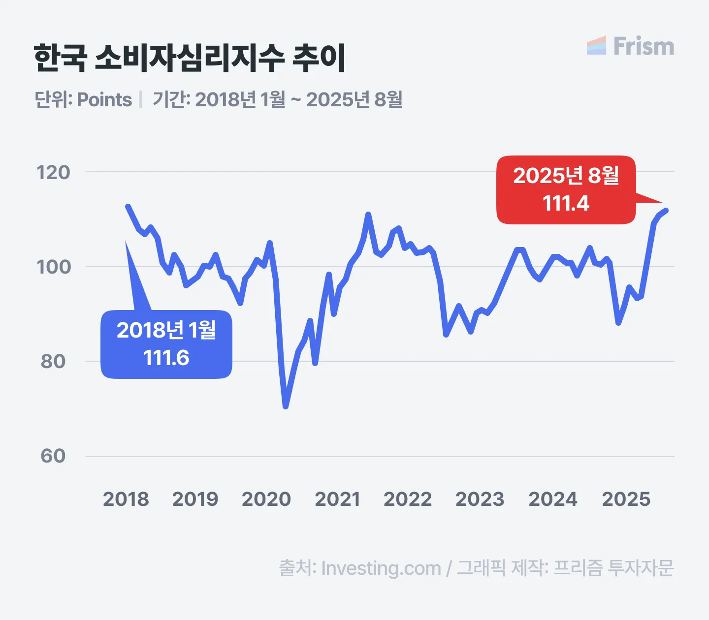 ํ๊ตญ 8์ ์๋น์์ฌ๋ฆฌ์ง์ 111.4