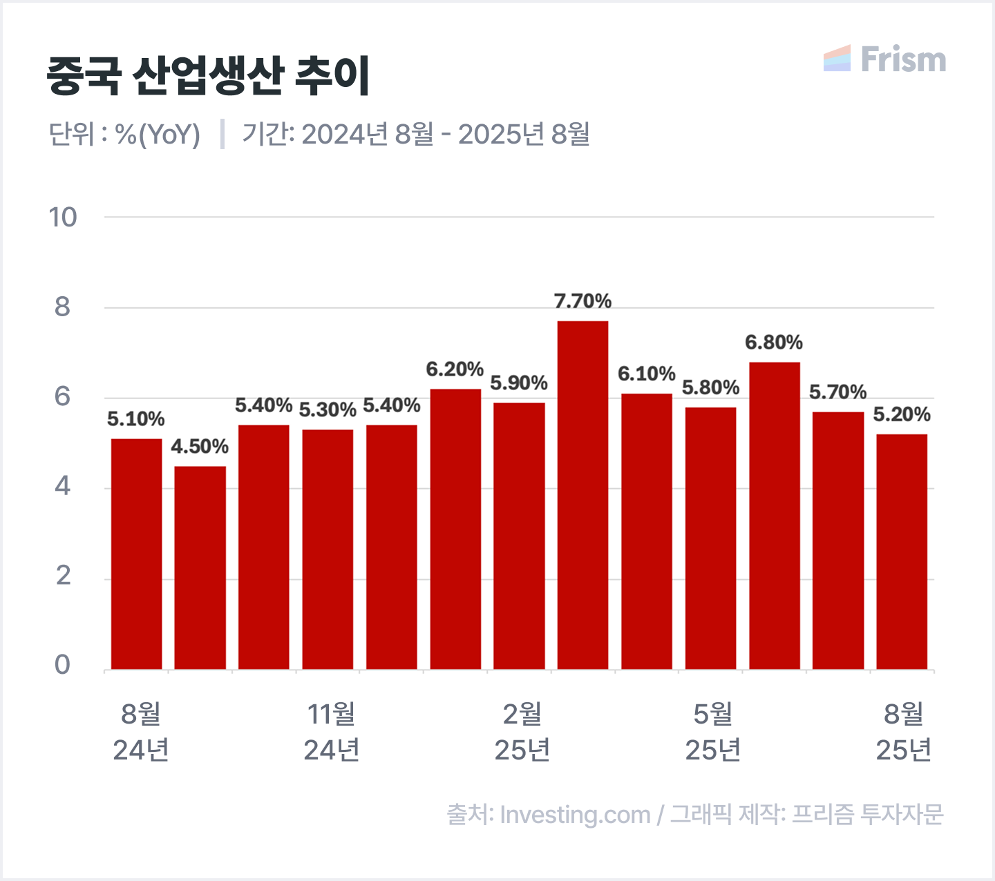 ์ค๊ตญ 8์ ์ฐ์ ์์ฐ, YoY 5.2%(์์์น ํํ)