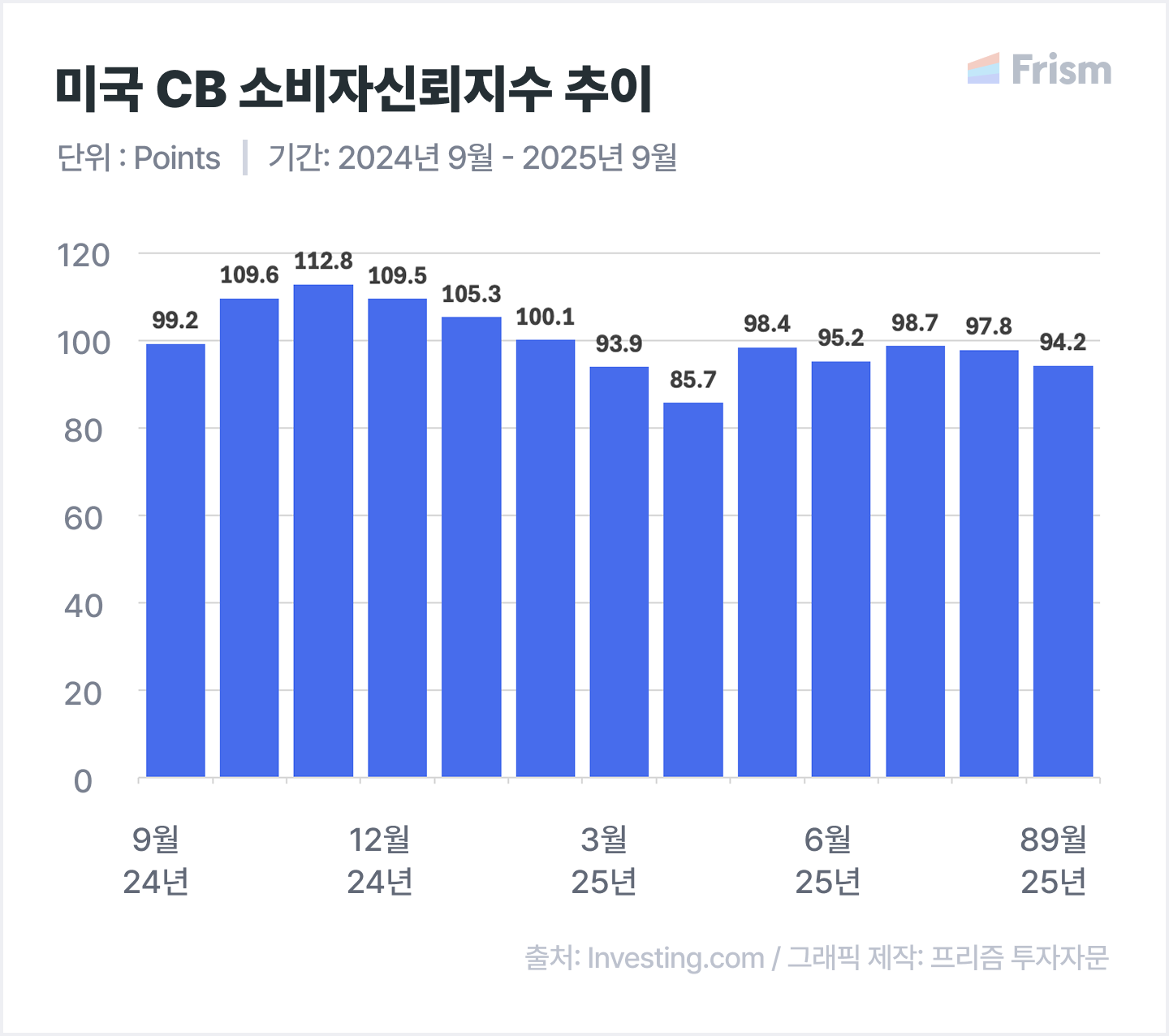 ๋ฏธ๊ตญ 9์ CB ์๋น์์ ๋ขฐ์ง์๋ 94.2๋ก ์์์น(96)๋ฅผ ํํํ์ด์.
