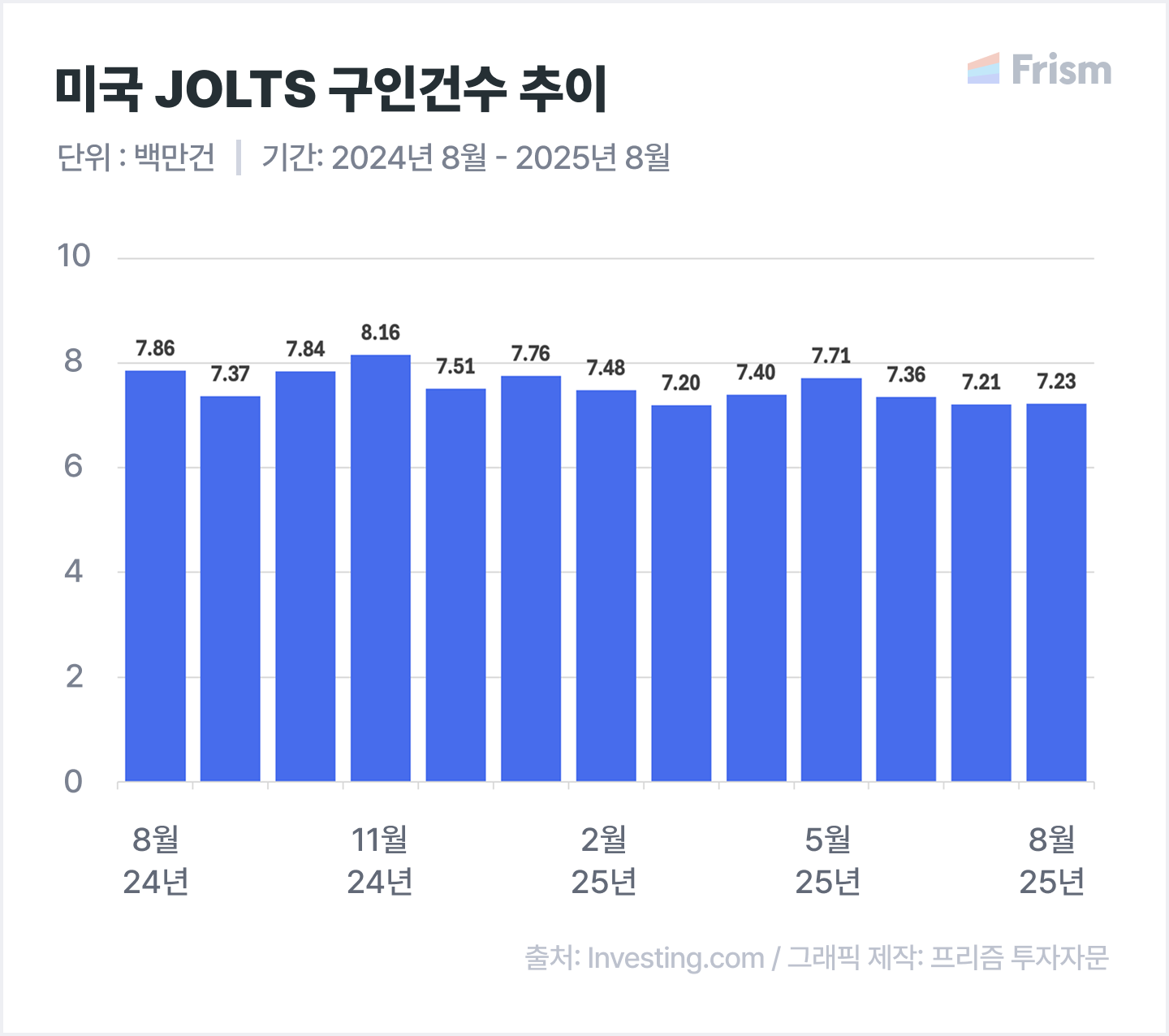 ๋ฏธ๊ตญ 8์ JOTLS ๊ตฌ์ธ๊ฑด์, 722.7๋ง๊ฑด(์์์น ์ํ)