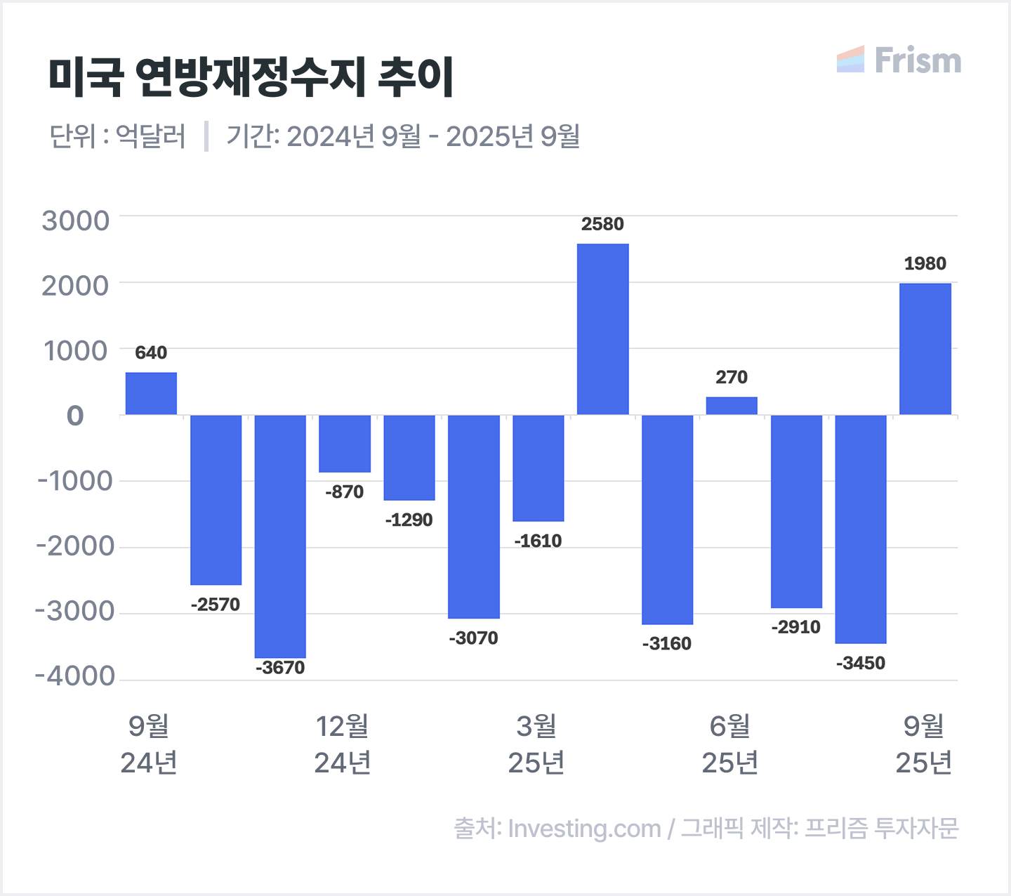 λ―Έκ΅ 9μ μ°λ°©μ¬μ μμ§λ 1980μ΅ λ¬λ¬ νμλ‘ μ μ(3450μ΅ λ¬λ¬ μ μ) λλΉ μμΉνμ΄μ.