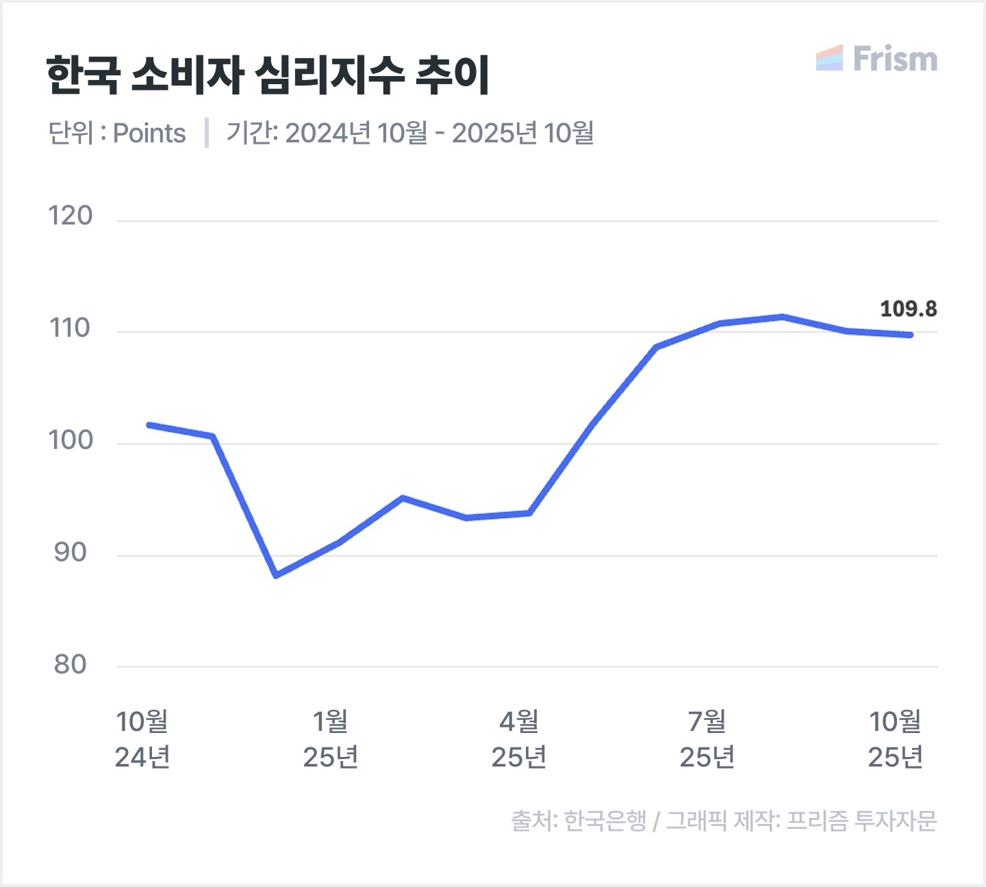 28μΌ νκ΅μνμ λ°λ₯΄λ©΄ μλΉμμ¬λ¦¬μ§μλ 109.8λ‘ μ μ 110.1 λλΉ νλ½νμ΄μ.