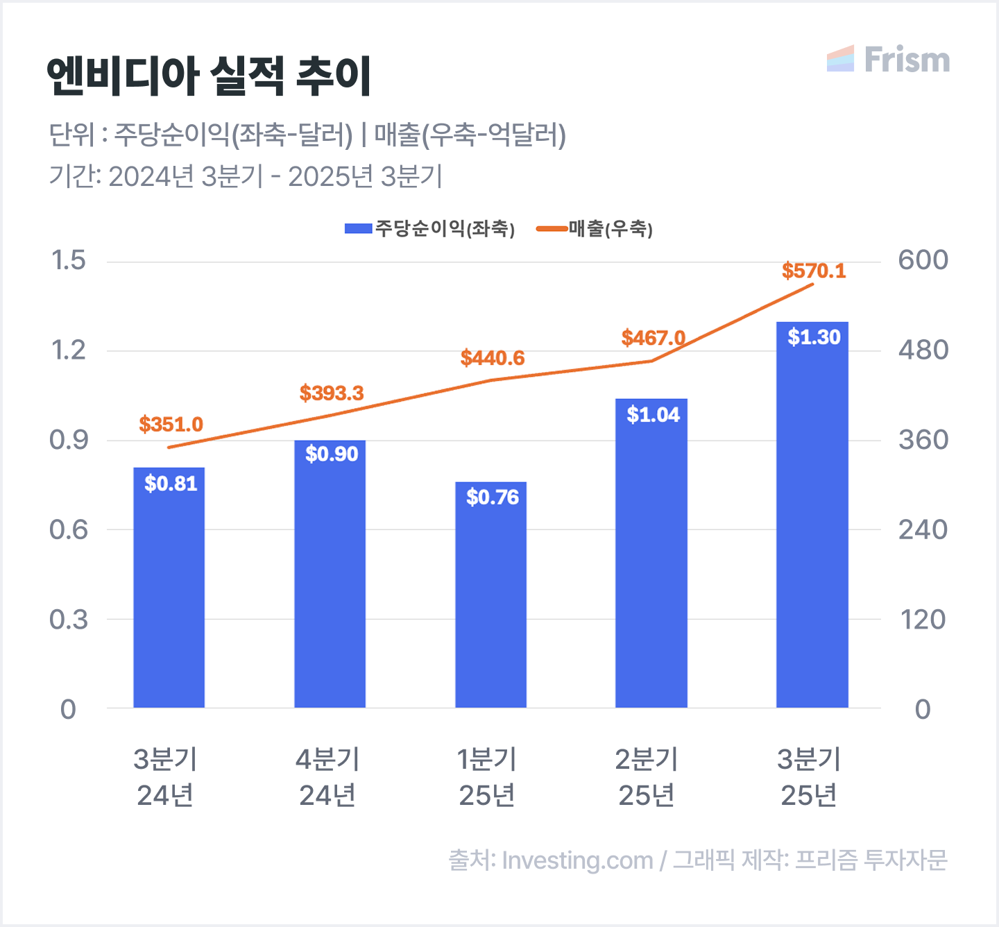 3분기 엔비디아 실적발표, 매출 570억 1,000만 달러(예상치 상회)