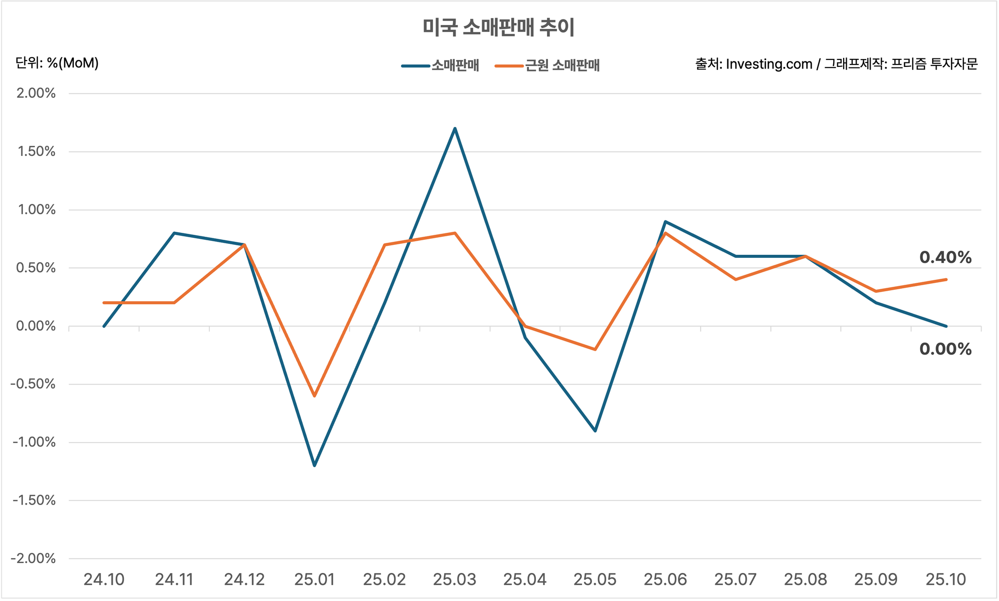 미국 10월 소매판매, MoM 0% (예상치 하회)