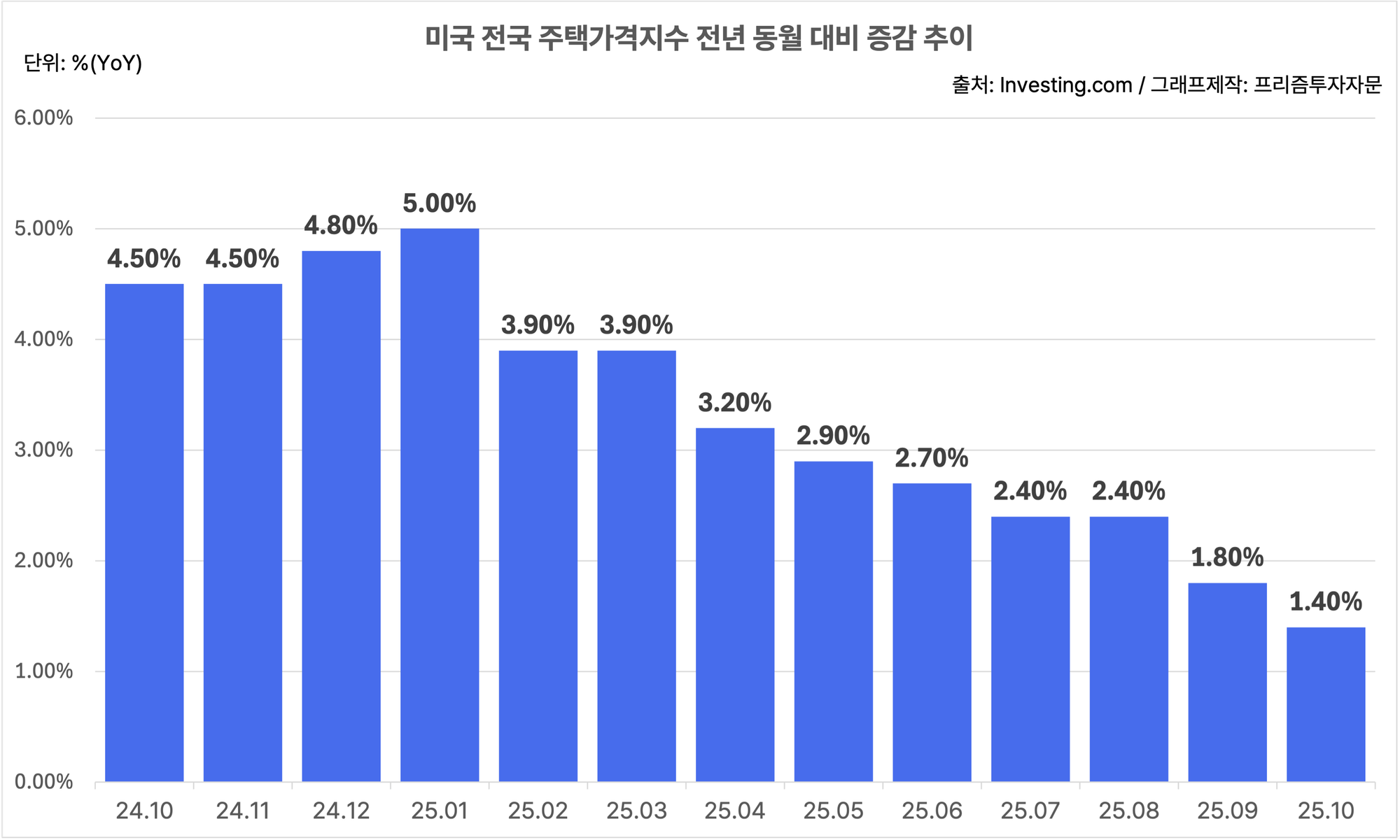 미국 10월 전국 주택가격지수, YoY 1.4%