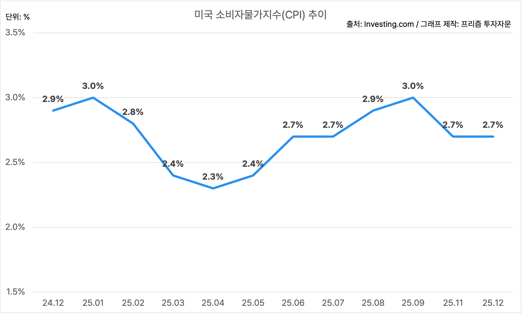 미국 12월 소비자물가지수 예상치 부합, YoY 2.7%