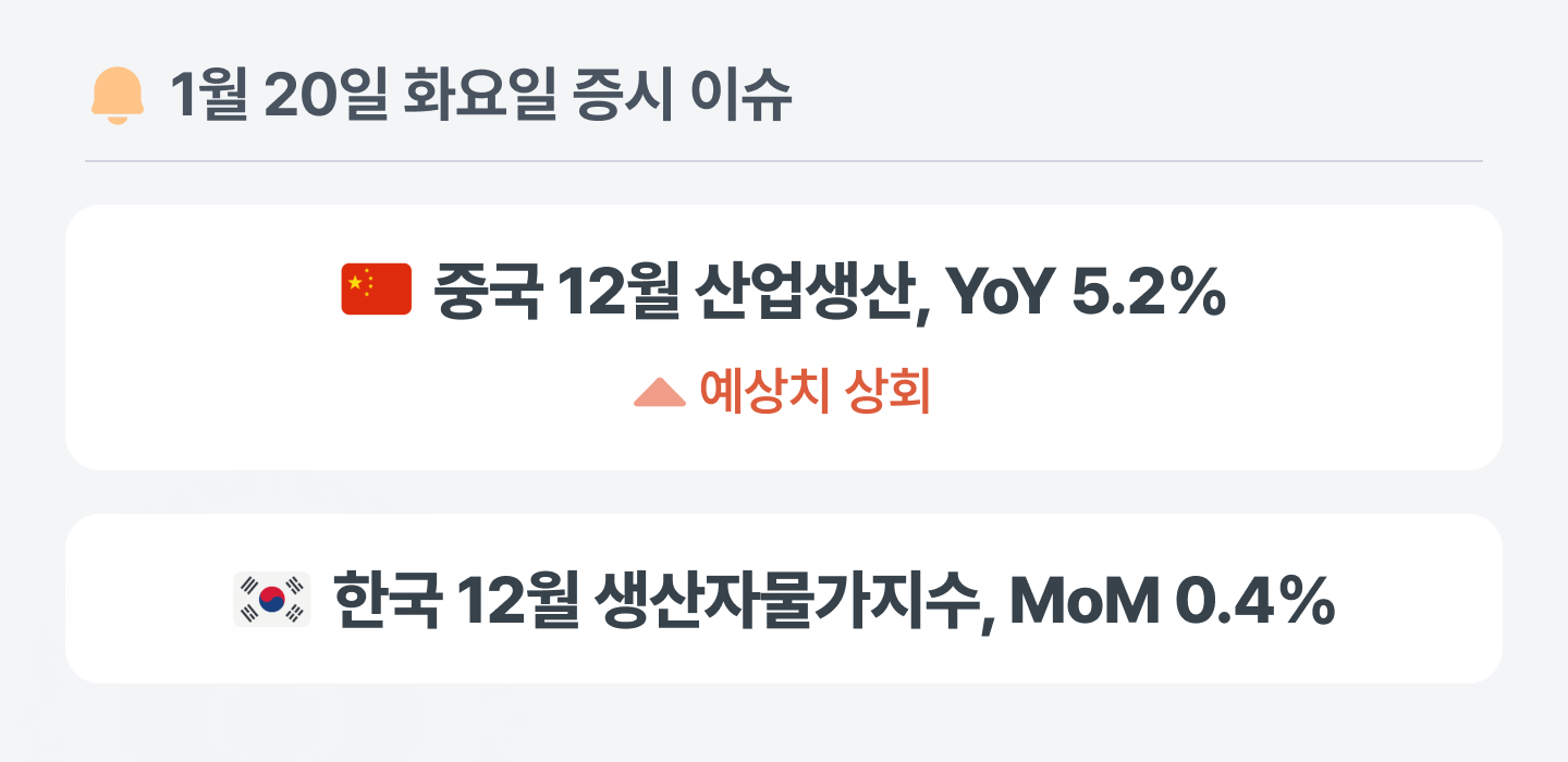 중국 12월 산업생산은 예상치를 상회하며 제조업 중심으로 생산 쪽 체력은 생각보다 버티는 모습이에요. 다만 올해 관건은 생산보다 소비·투자가 얼마나 따라붙느냐라서, 이번 흐름이 내수 쪽으로 번지기보다는 공급만 강한 회복에 머물지 지켜볼 필요가 있어 보여요.