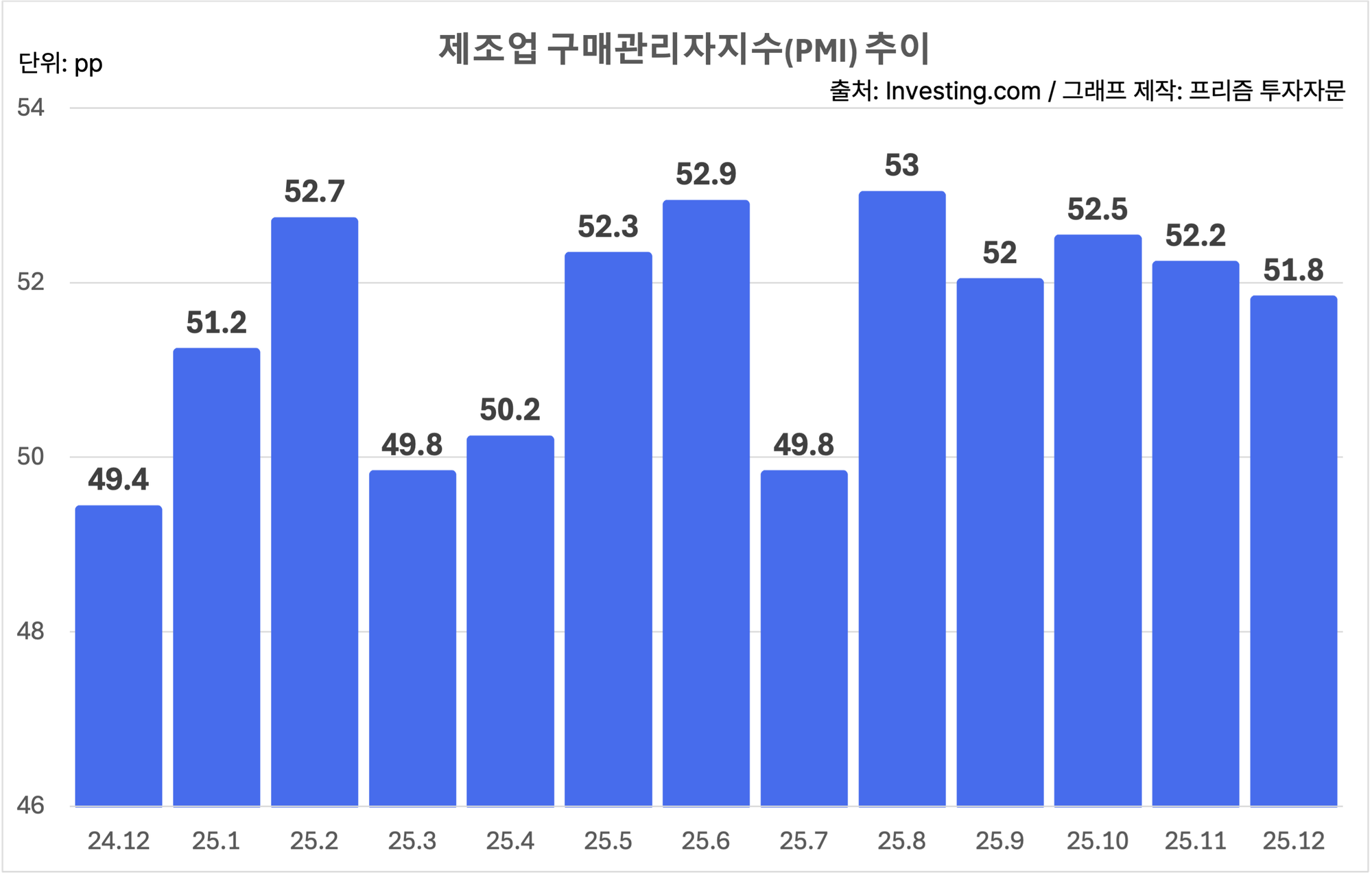 12월 미국 제조업 PMI가 5개월 연속 확장 추세를 이어갔지만, 3개월 연속 하락세를 유지했어요. 이번 지표는 경기 급랭보다는 완만한 확장쪽에 가깝지만, 2026년 초 전망은 신규 주문 흐름이 얼마나 따라붙는지 점검할 필요가 있어 보여요.