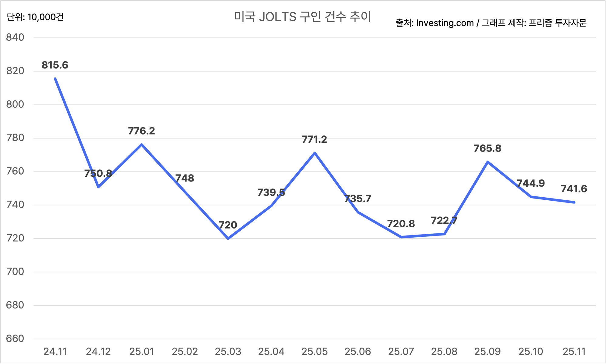 미국 11월 JOLTS 구인 건수 예상치 하회, 7.146M