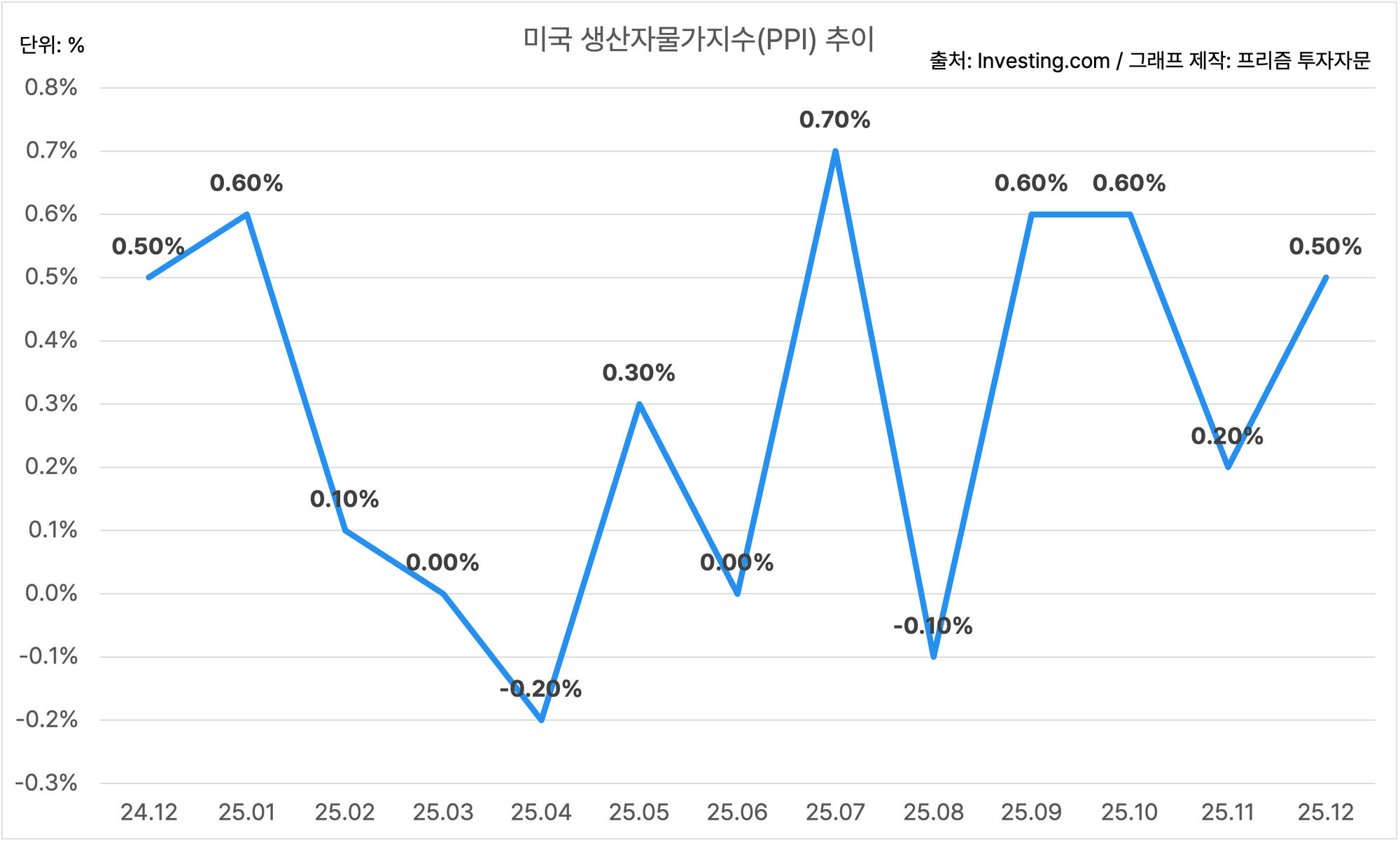 미국의 12월 생산자물가지수는 MoM 0.5%에요.