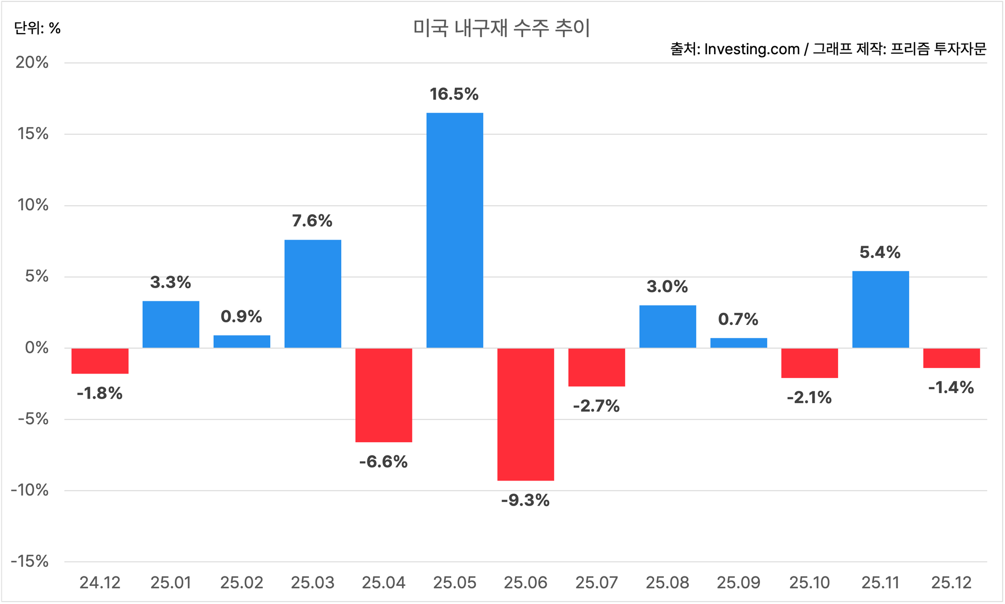 미국의 12월 내구재 수주는 MoM -1.4%에요.