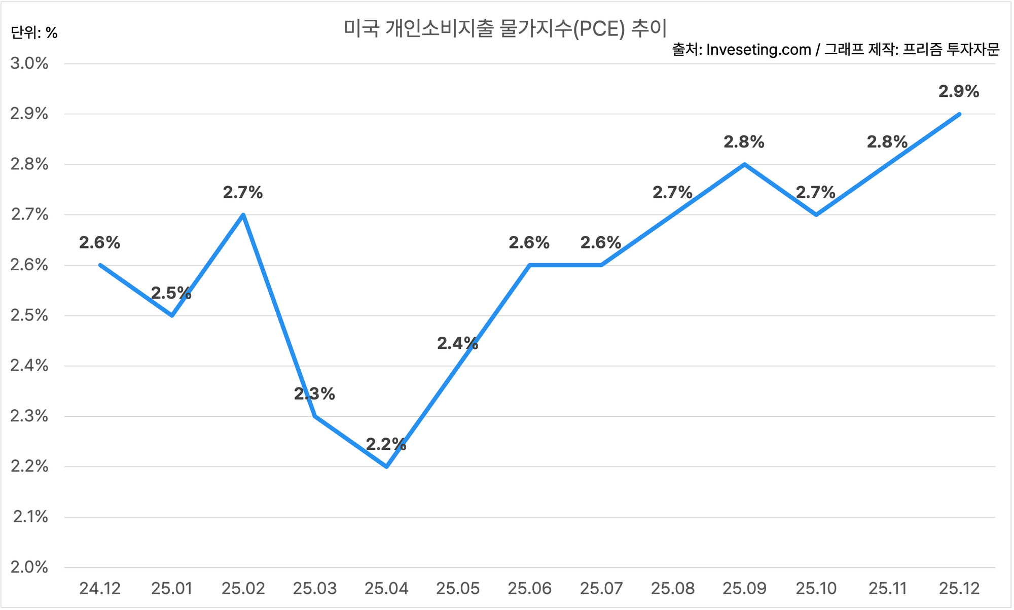 미국의 12월 개인소비지출 물가지수는 예상치를 상회했어요. 근원 물가 역시 3.0%를 기록하며 인플레이션 잔열을 드러낸 만큼, 연준이 당분간 정책 전환에 서두르지 않고 신중한 기조를 이어갈 것이라는 전망에 무게가 실리는 분위기예요.