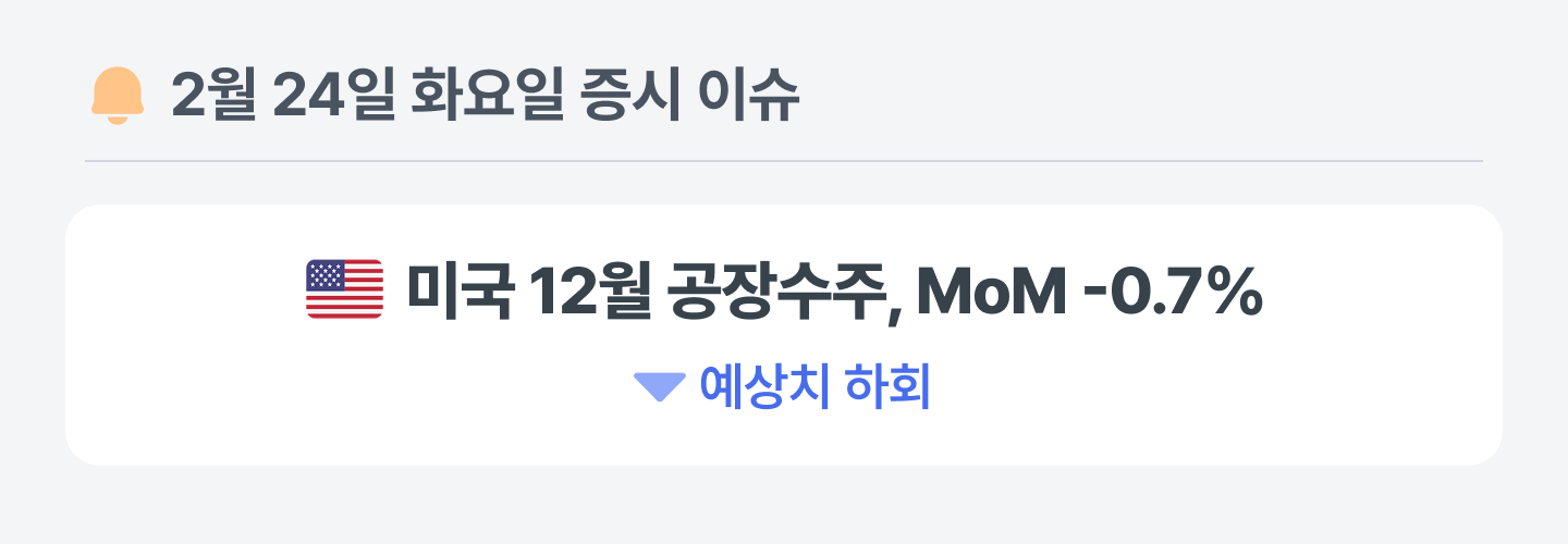 미국의 12월 공장수주 지수는 전월 대비 -0.7%를 기록하며 시장 예상치(-0.4%)를 밑돌았고, 직전 달의 가파른 상승분(2.7%)을 상당 부분 되돌리며 제조업 경기의 불확실성을 노출한 모습이에요.