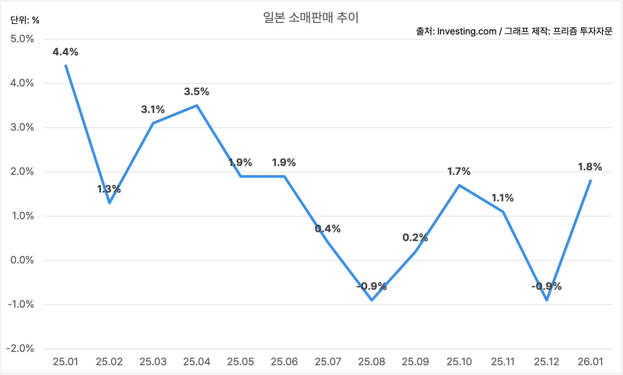 일본의 1월 소매판매는 YoY 1.8%에요.