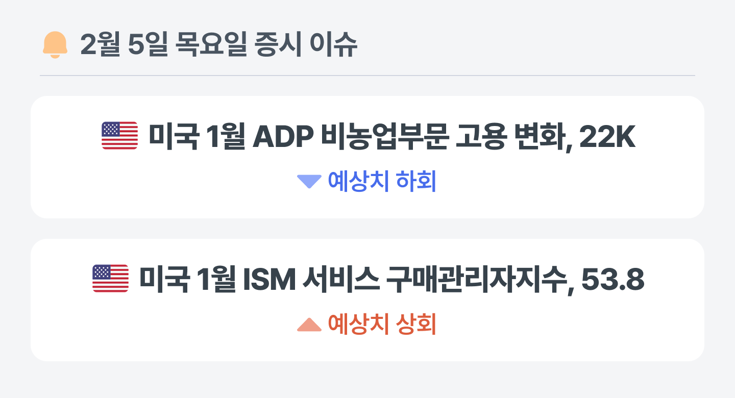 미국의 1월 ADP 비농업부문 고용 변화는 시장 예상치를 하회하며 고용 창출력의 둔화 흐름을 투영하는 양상이에요. 다만 안정적인 임금 상승률이 경기 하방 압력을 일정 부분 상쇄하고 있어, 노동 시장이 급격한 위축보다는 완만한 수급 조정 국면을 지나는 분위기예요.