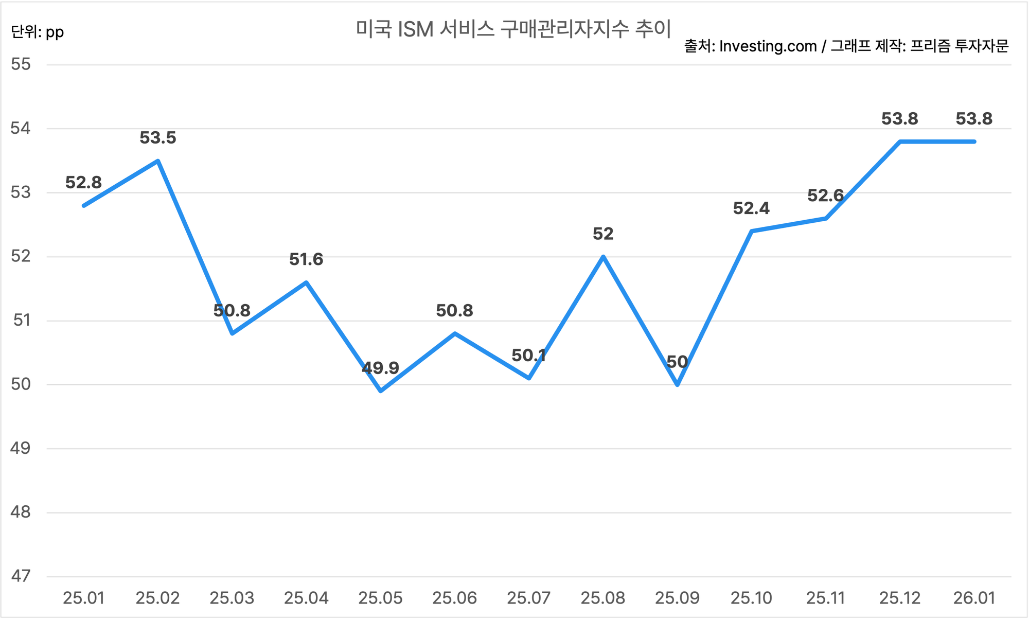 미국의 1월 ISM 서비스 구매관리자지수는 53.8이에요.
