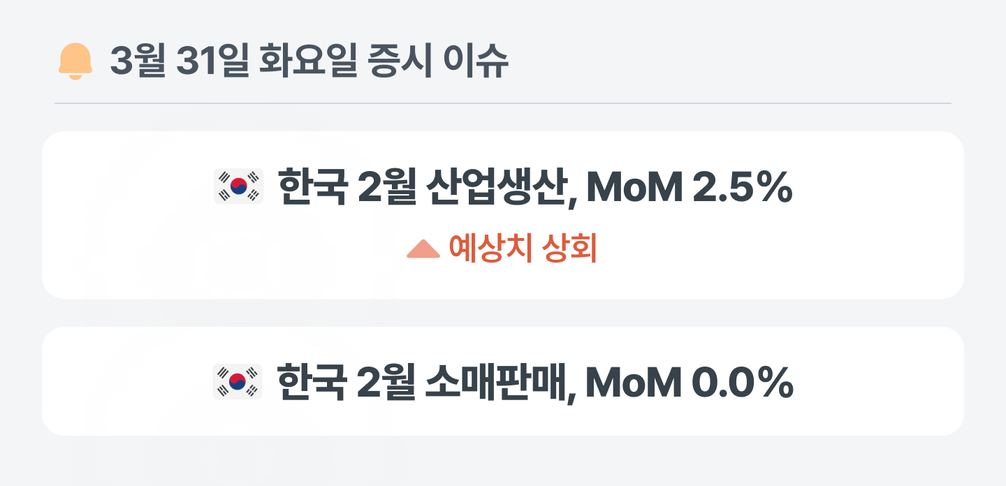 한국의 2월 소매판매는 보합이었어요. 수출 실적과 카드 사용 데이터가 견조하게 뒷받침되고 있어, 대외 불확실성 속에서도 실물 경기가 급락하기보다는 당분간 현재 수준을 지켜갈 것으로 예상돼요.