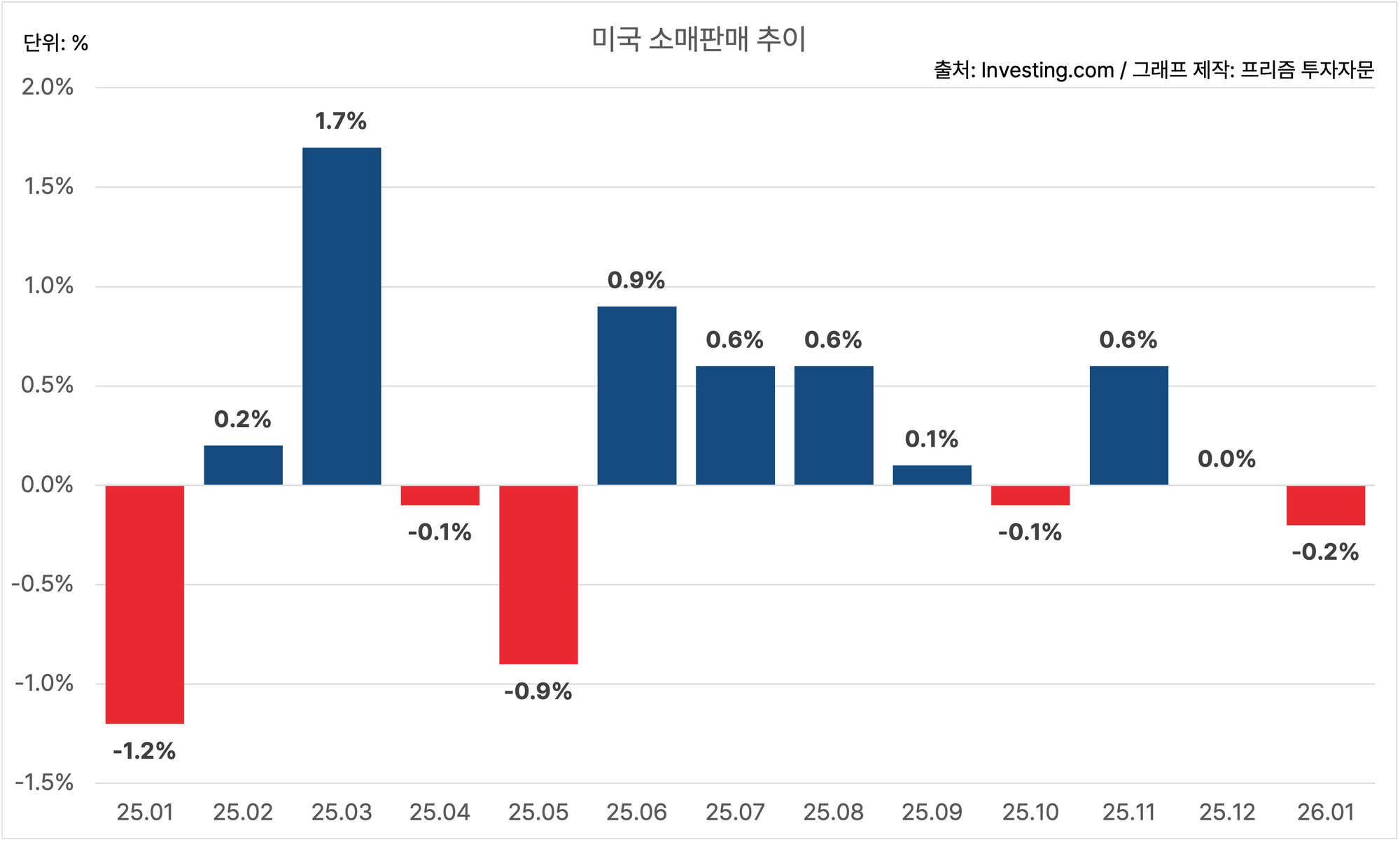 미국의 1월 소매판매는 MoM -0.2%에요.