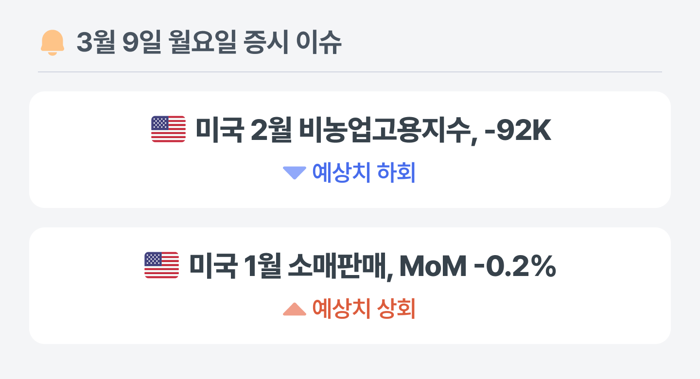 미국의 2월 비농업고용지수가 예상치를 대폭 하회하며 고용 시장의 수축 국면이 지표로 투영된 분위기예요. 관세 변수와 인플레이션 압력이 중첩된 가운데 연준이 지표의 추세적 안정을 식별하기 전까지는 정책 방향성을 설정하기 어려워 보여요.