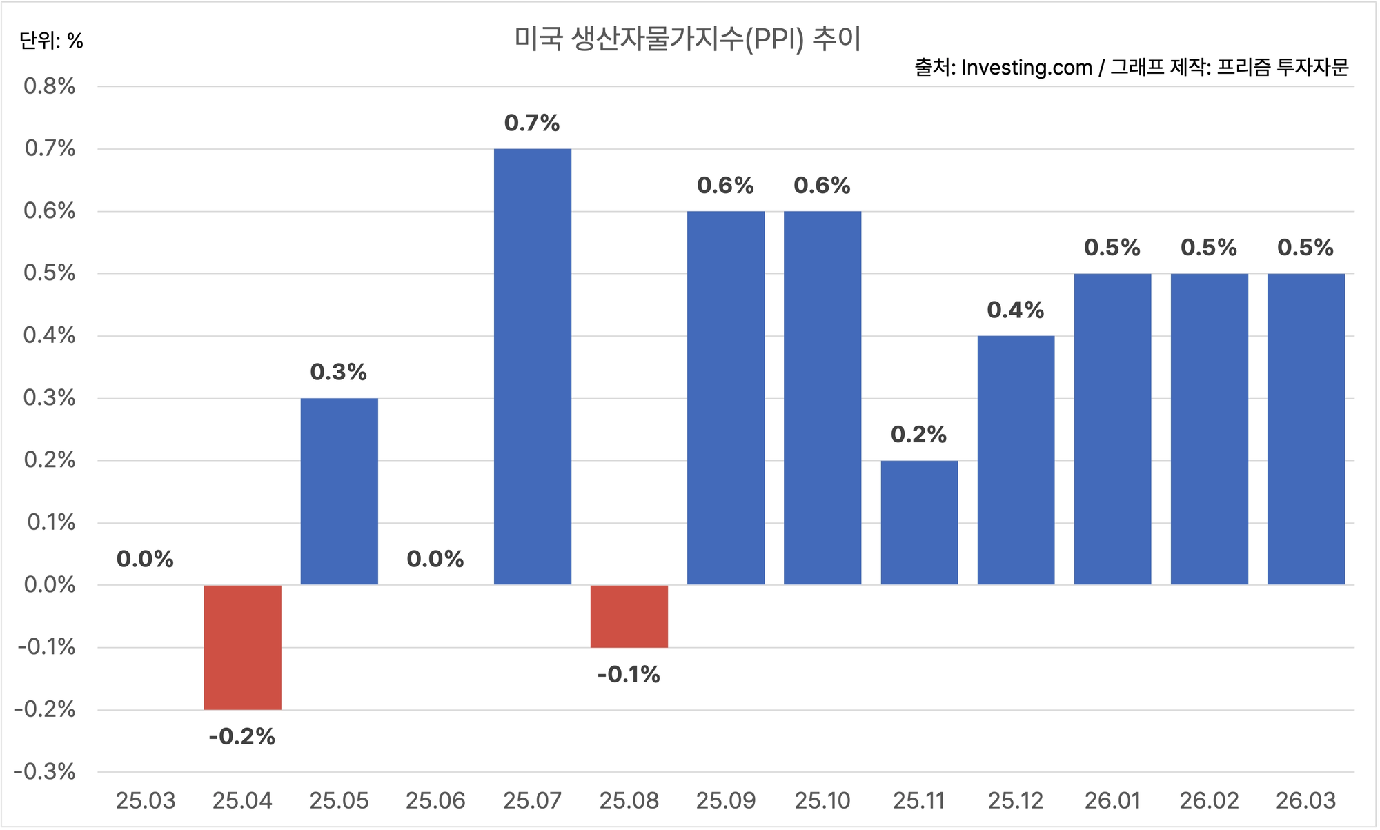 미국의 3월 생산자물가지수는 예상치를 하회했어요. 중동 전쟁으로 인한 에너지 가격 급등 우려에도 불구하고 도매 물가로의 실질적 충격 전이는 제한적이었어요. 이에 시장에서는 연준이 단기적으로 금리 동결 기조를 유지한 뒤 점진적으로 통화 정책 완화로 선회할 것이라는 기대감이 확산되는 분위기예요.