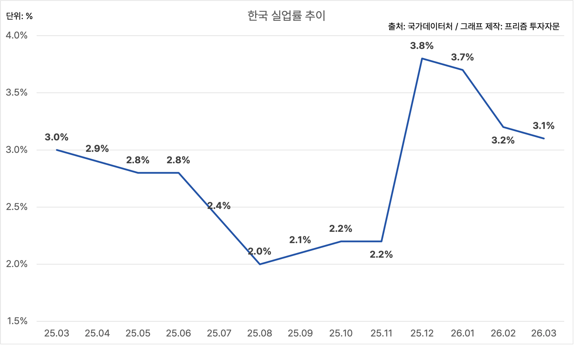 한국의 3월 실업률은 3.1%를 기록했으나, 고용 지표의 후행적 특성상 중동 사태 등 최근의 대외 악재가 수치에 직접적인 영향을 주지 않았다는 해석이 있어요. 지정학적 리스크가 시차를 두고 실물 경제 전반에 침투할 가능성이 높은 만큼, 현재의 지표 안정성보다는 향후 기업의 채용 심리 위축 여부를 경계해야 해요.