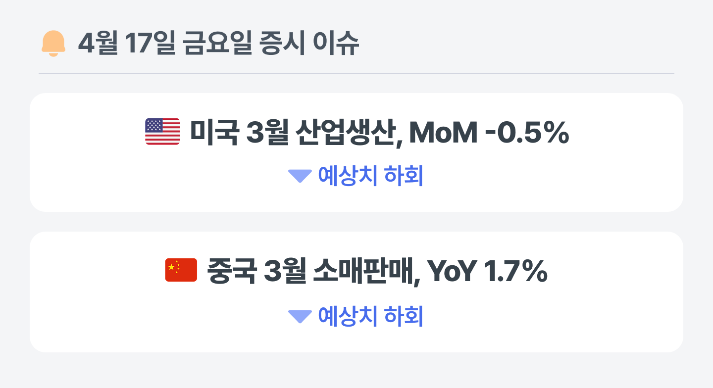 미국의 3월 산업생산은 자동차와 에너지 등 주요 품목의 동반 부진 속에 예상치를 하회했어요. 특정 업종의 생산 위축이 지표 전반을 끌어내린 만큼, 제조업 경기가 전반적인 하방 압력에 직면했는지 아니면 일시적인 공급 차질에 따른 부침인지에 따라 향후 경기 향방이 갈릴 전망이에요.