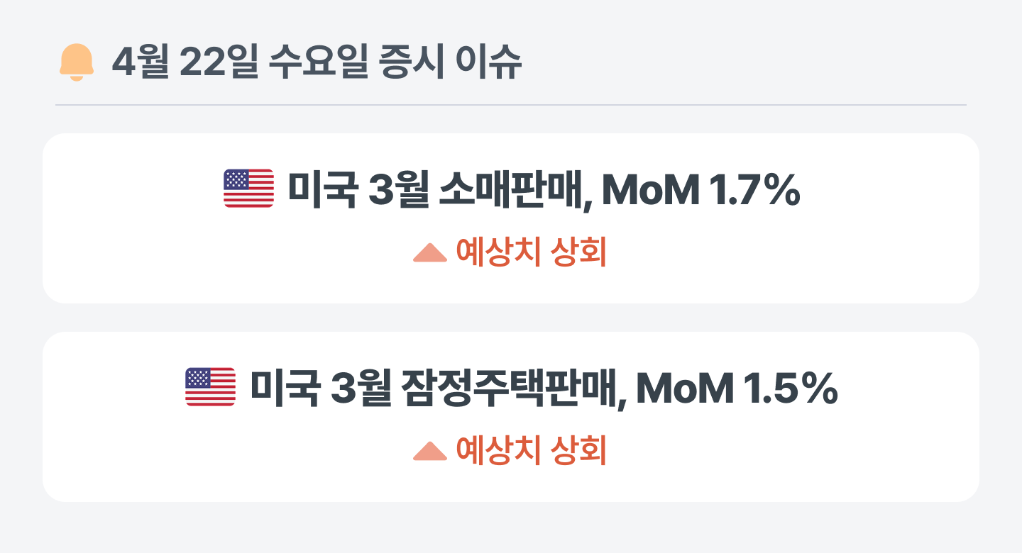 미국의 3월 잠정주택판매는 예상치를 큰 폭으로 상회했어요. 다만 지정학적 리스크로 인해 견조한 경제 흐름이 시장에 충분히 반영되지 못하고 있어, 불확실성이 걷히는 시점에서도 달러 강세 압력이 지속될 수 있다는 의견이 있어요.