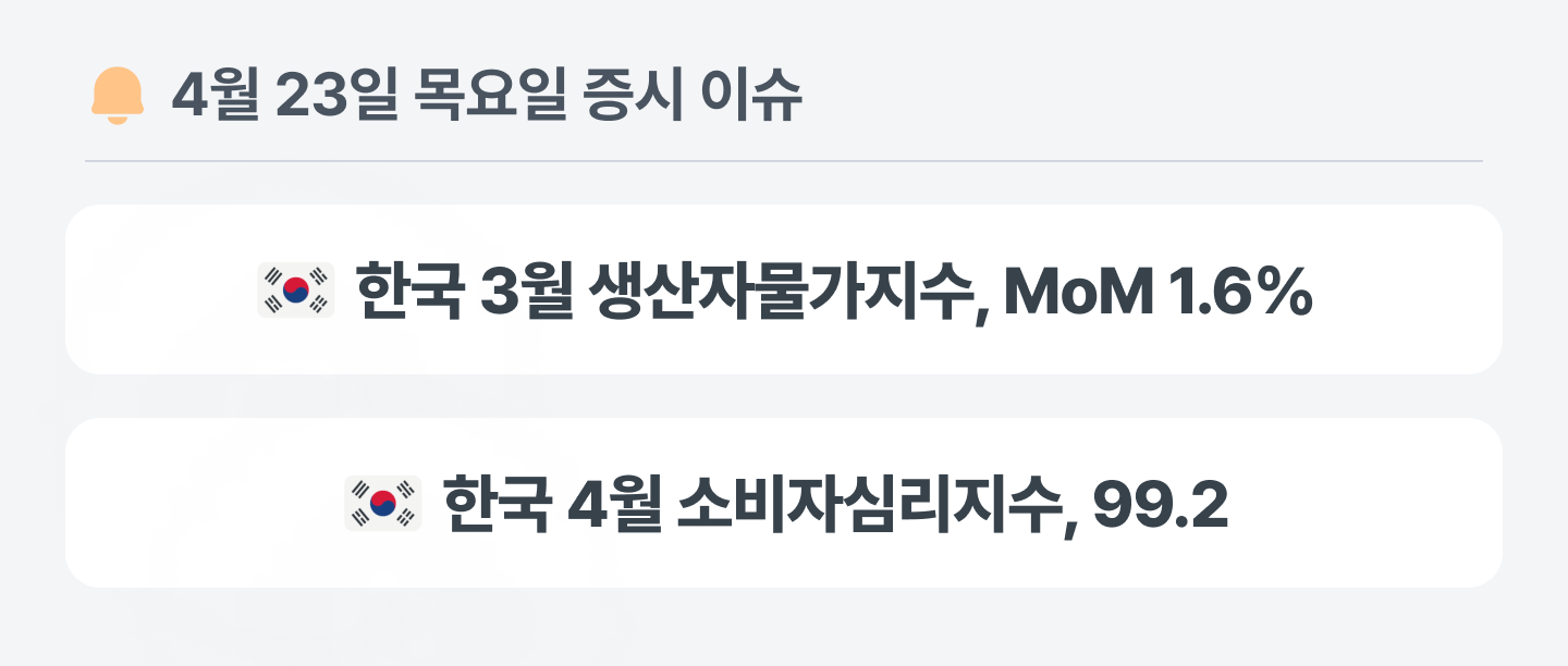 한국의 3월 생산자물가지수는 전월 대비 1.6%, 전년 동월 대비 4.1% 상승했어요. 석탄·석유 제품이 31.9% 급등하며 상승을 주도한 가운데, 원자재 가격 상승의 파급 효과가 시차를 두고 본격화될 것으로 예상돼 생산자물가의 상방 압력이 당분간 이어질 수 있어요.