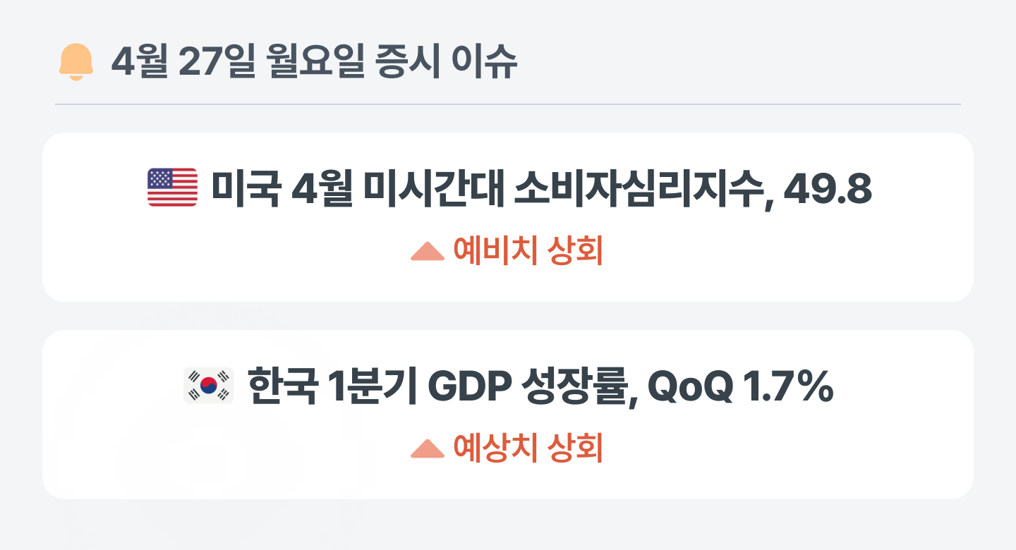 미국의 4월 미시간대 소비자심리지수는 예비치를 상회했어요. 이란 분쟁 여파로 한때 크게 흔들렸던 소비자 심리가 휴전 소식과 휘발유 가격 하락을 계기로 일부 안정을 찾은 모습이지만, 지정학적 불확실성이 완전히 해소된 것은 아닌 만큼 추후 경과를 지켜볼 필요가 있어요.