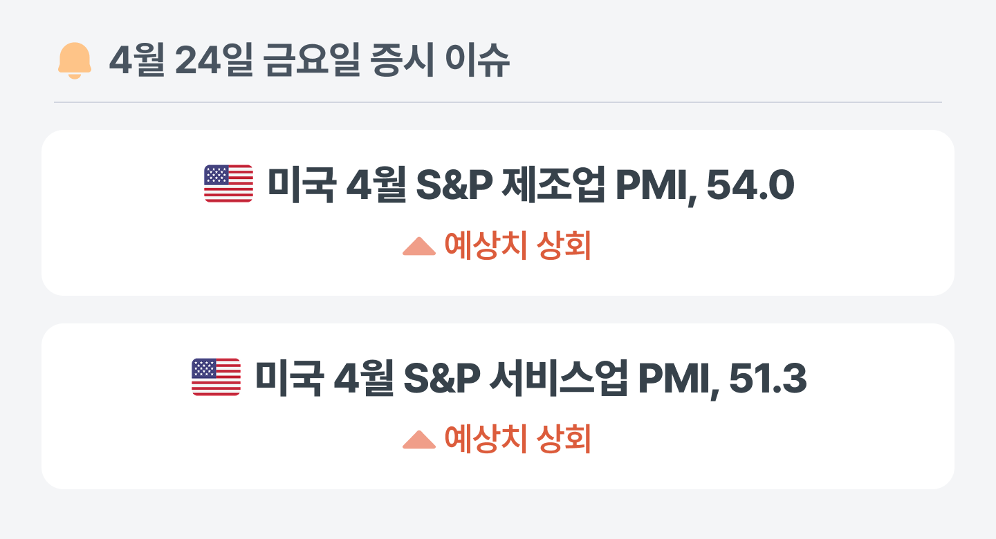 미국의 4월 S&P 제조업 PMI는 예상치를 상회했어요. 다만 기업들이 공급 부족과 가격 상승에 대비해 미리 주문을 끌어당긴 영향이 컸던 만큼, 수치 호조가 제조업 경기의 실질적인 회복을 반영한다기보다는 불안 심리가 만들어낸 일시적 착시일 수 있어요.