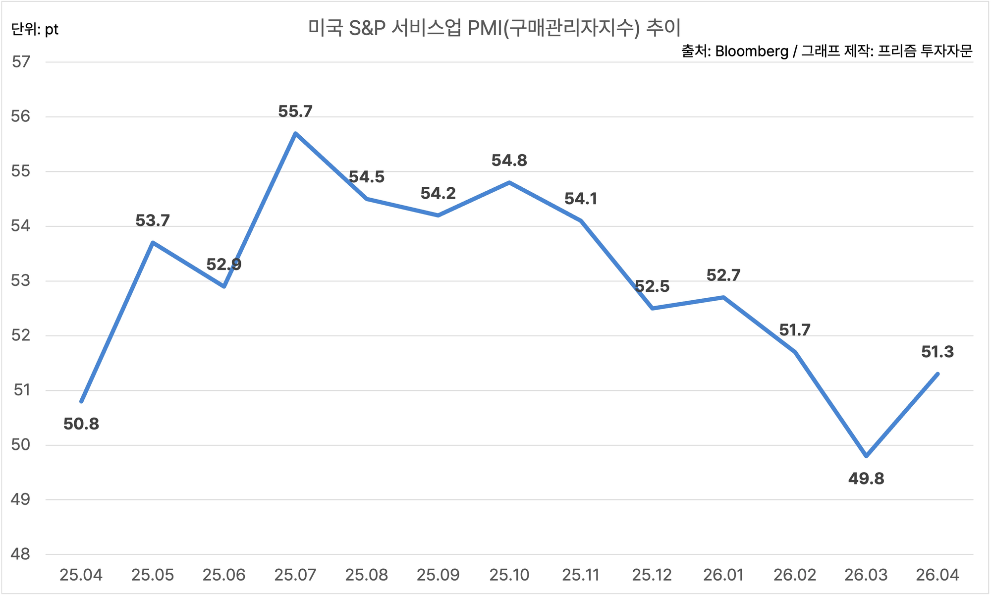 미국의 4월 S&P 서비스업 PMI는 51.3이에요.
