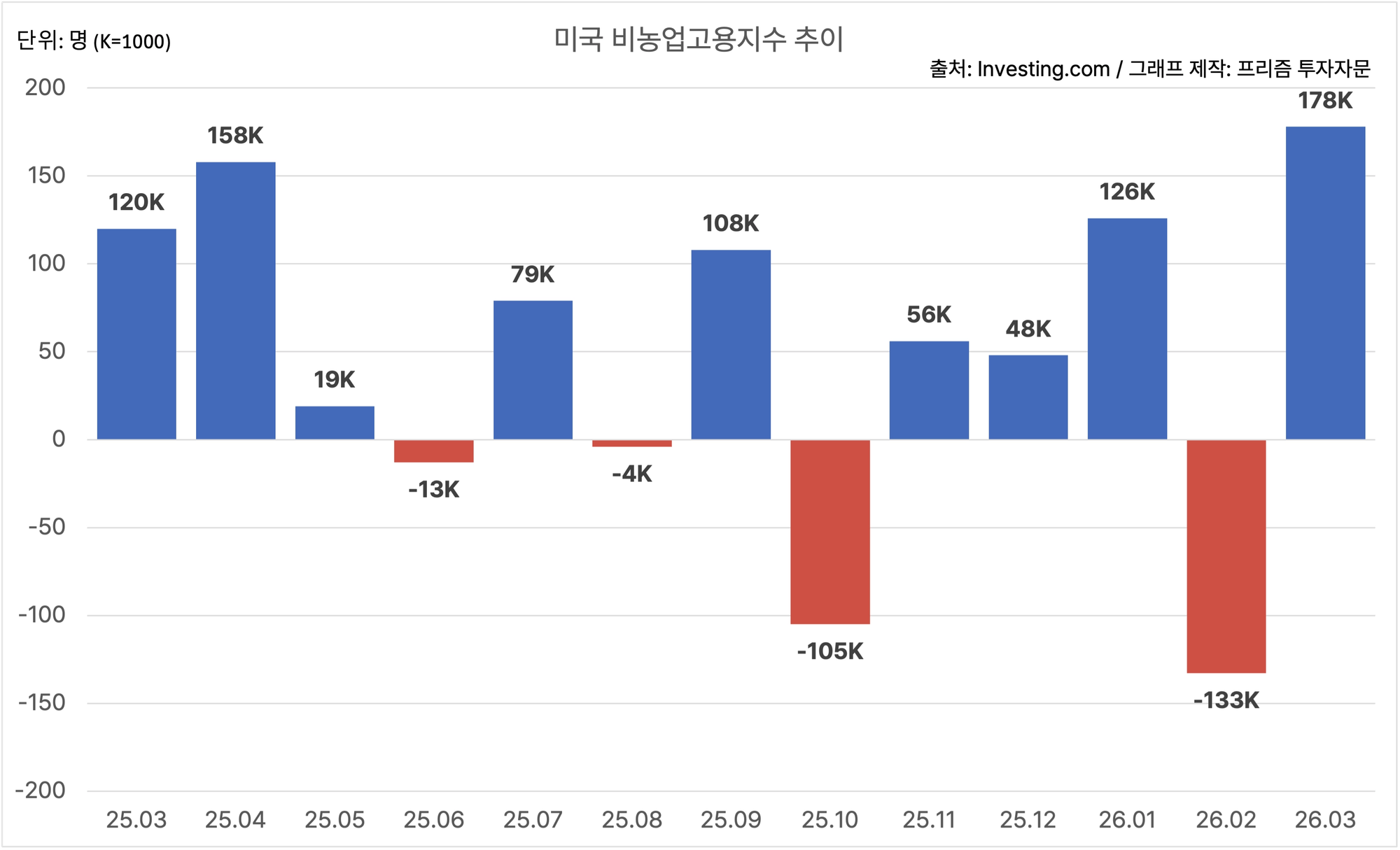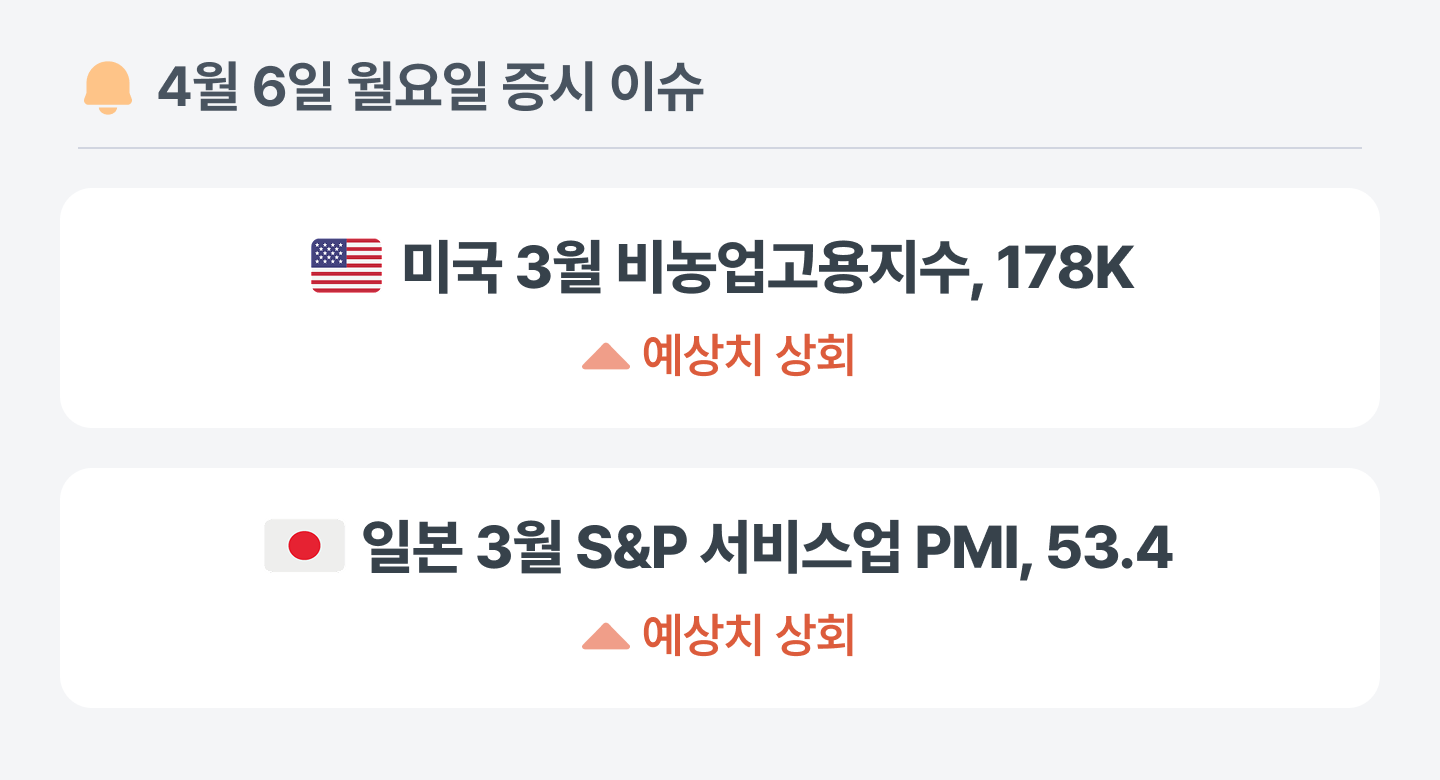 미국의 3월 비농업고용지수는 예상치를 상회하며 노동시장이 비교적 안정화되는 흐름을 보였지만, 시장은 중동 분쟁이라는 새로운 충격의 영향을 경계하는 분위기에요. 전쟁이 장기화되고 있어, 고용 시장의 안정세가 꾸준히 이어질 수 있을지 지켜봐야 해요.