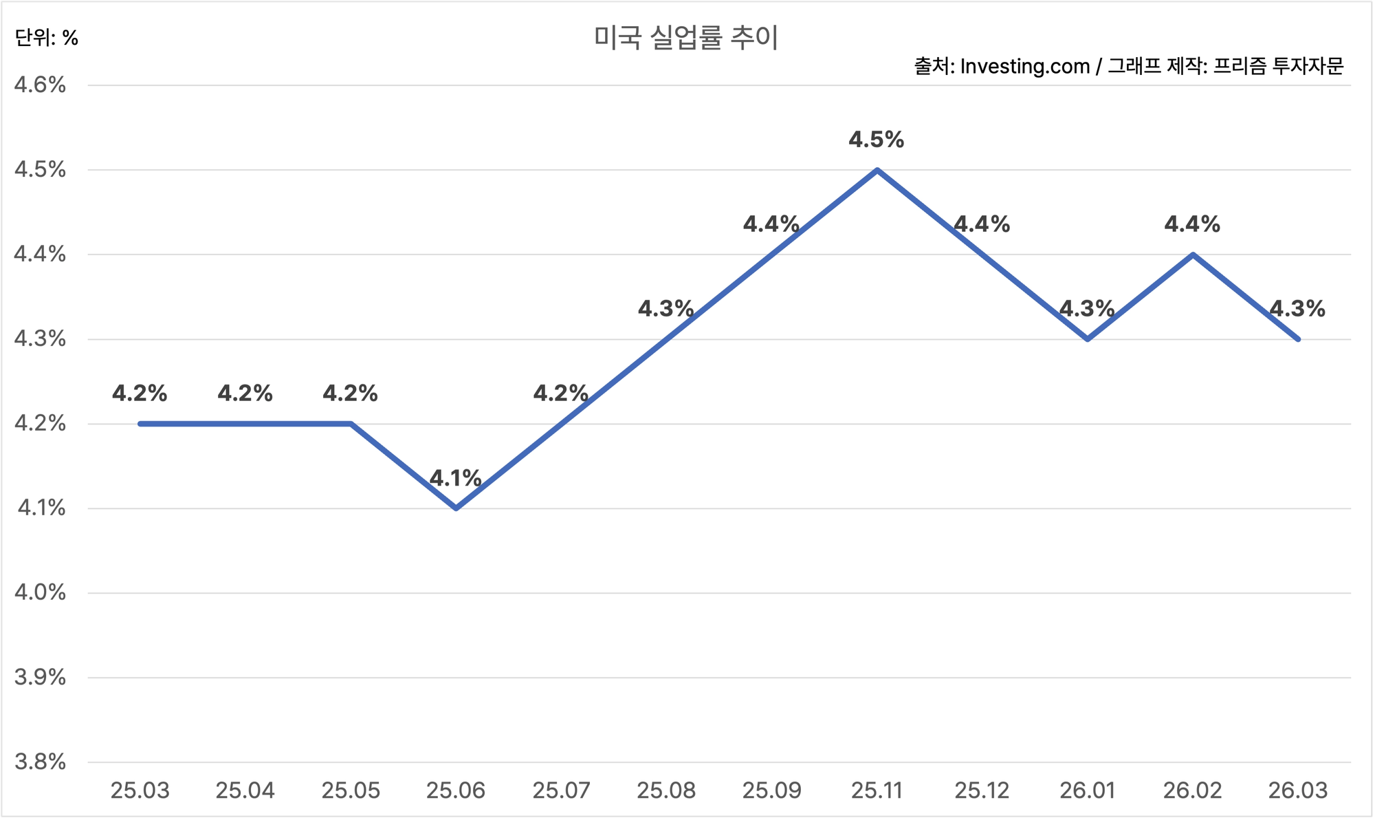 미국의 3월 실업률은 4.3%에요.