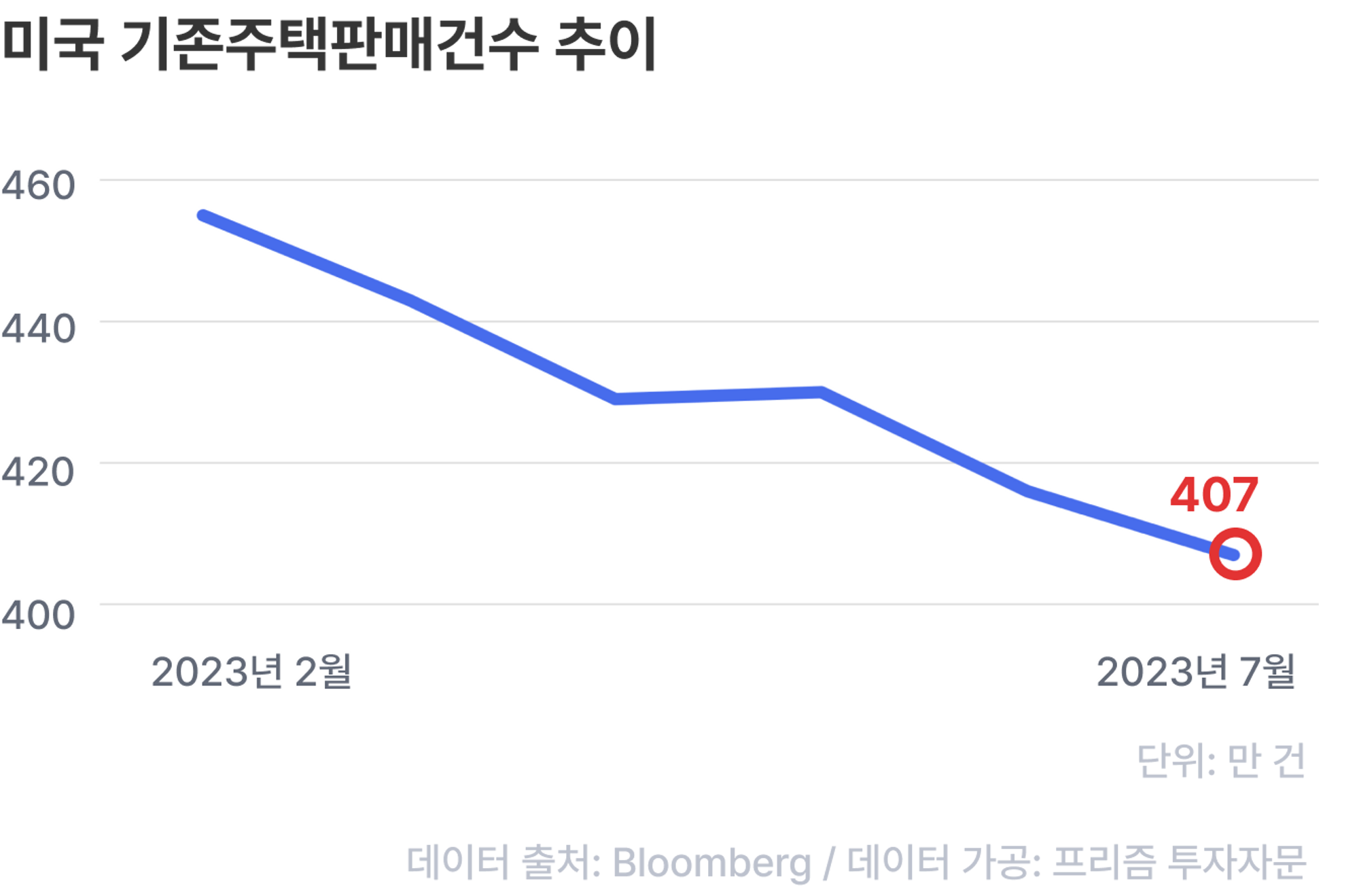 - 미국 7월 기존주택판매 407만 건 집계 … 6개월래 최저치