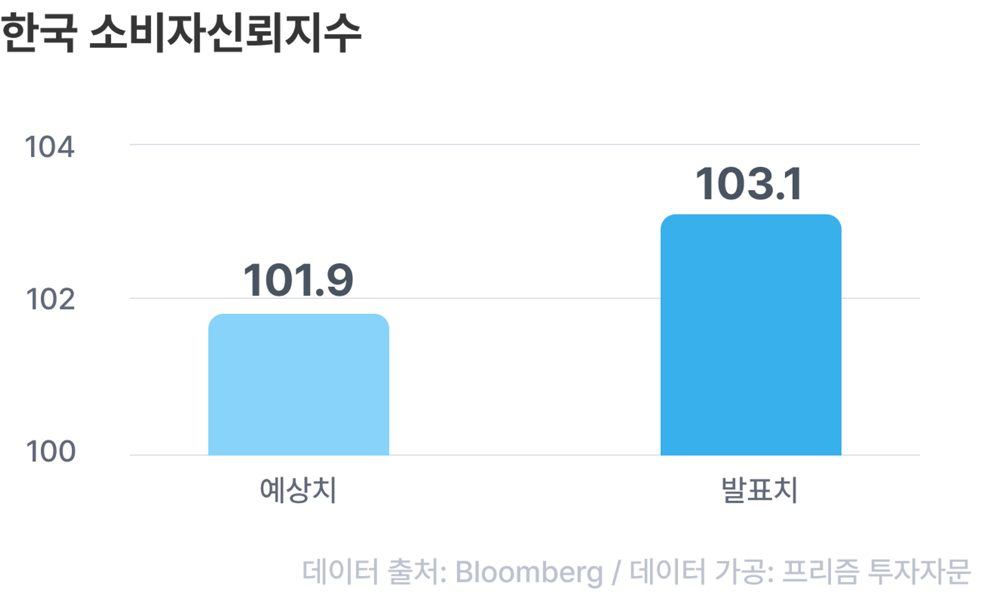 - 한국 8월 소비자신뢰지수 103.1 집계 … 예상치(101.9) 상회