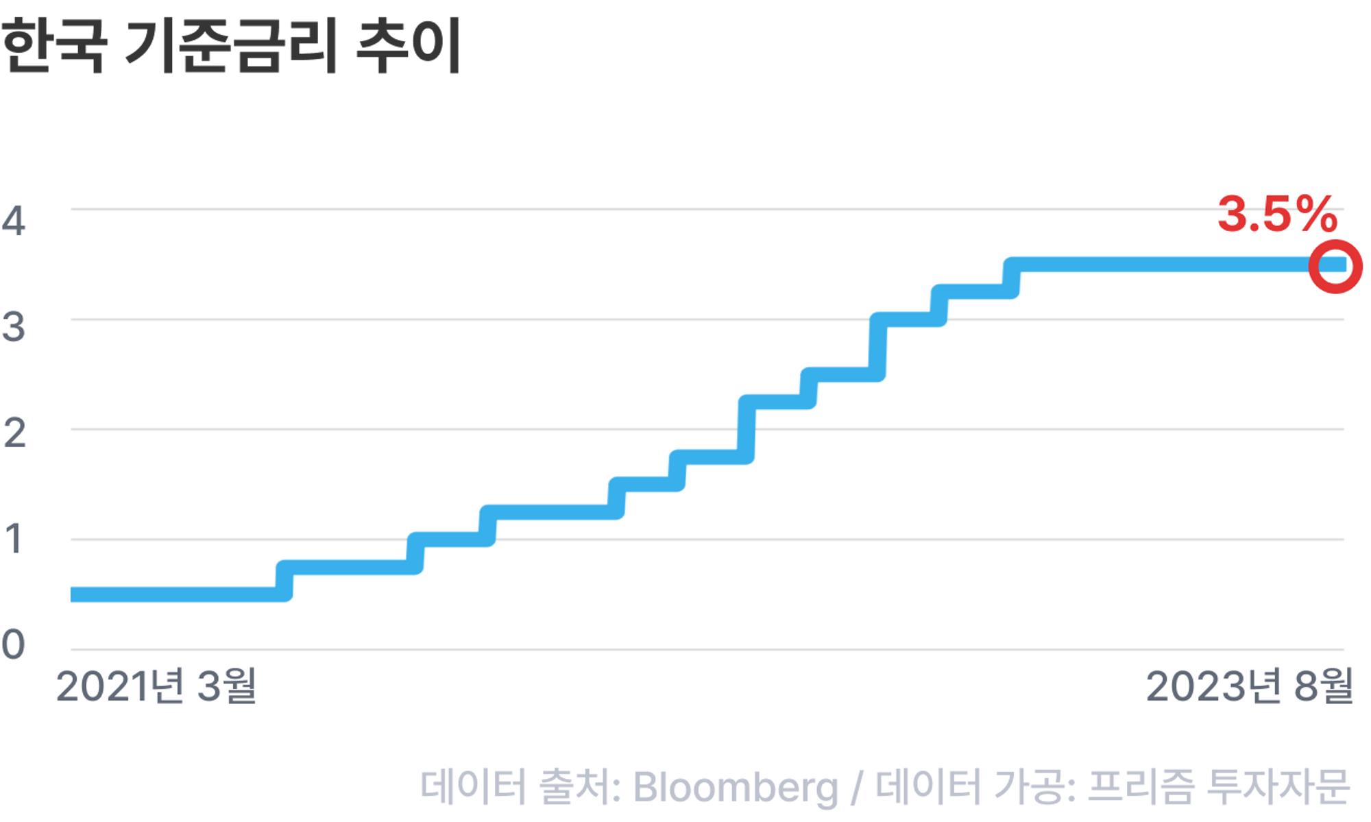 한국의 8월 기준 금리는 다섯 차례 연속 동결되었네요!