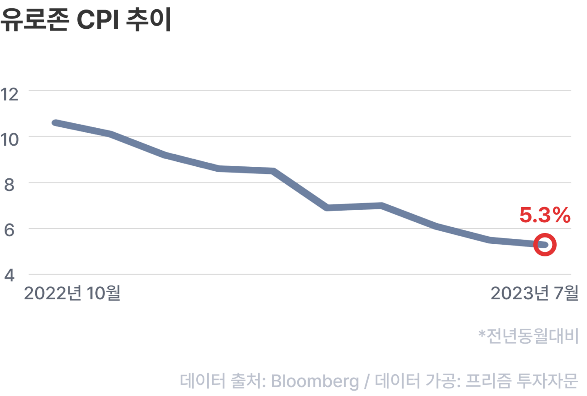 - 유로존 7월 CPI 5.3%(YoY) 집계 … 9개월 연속 하락세