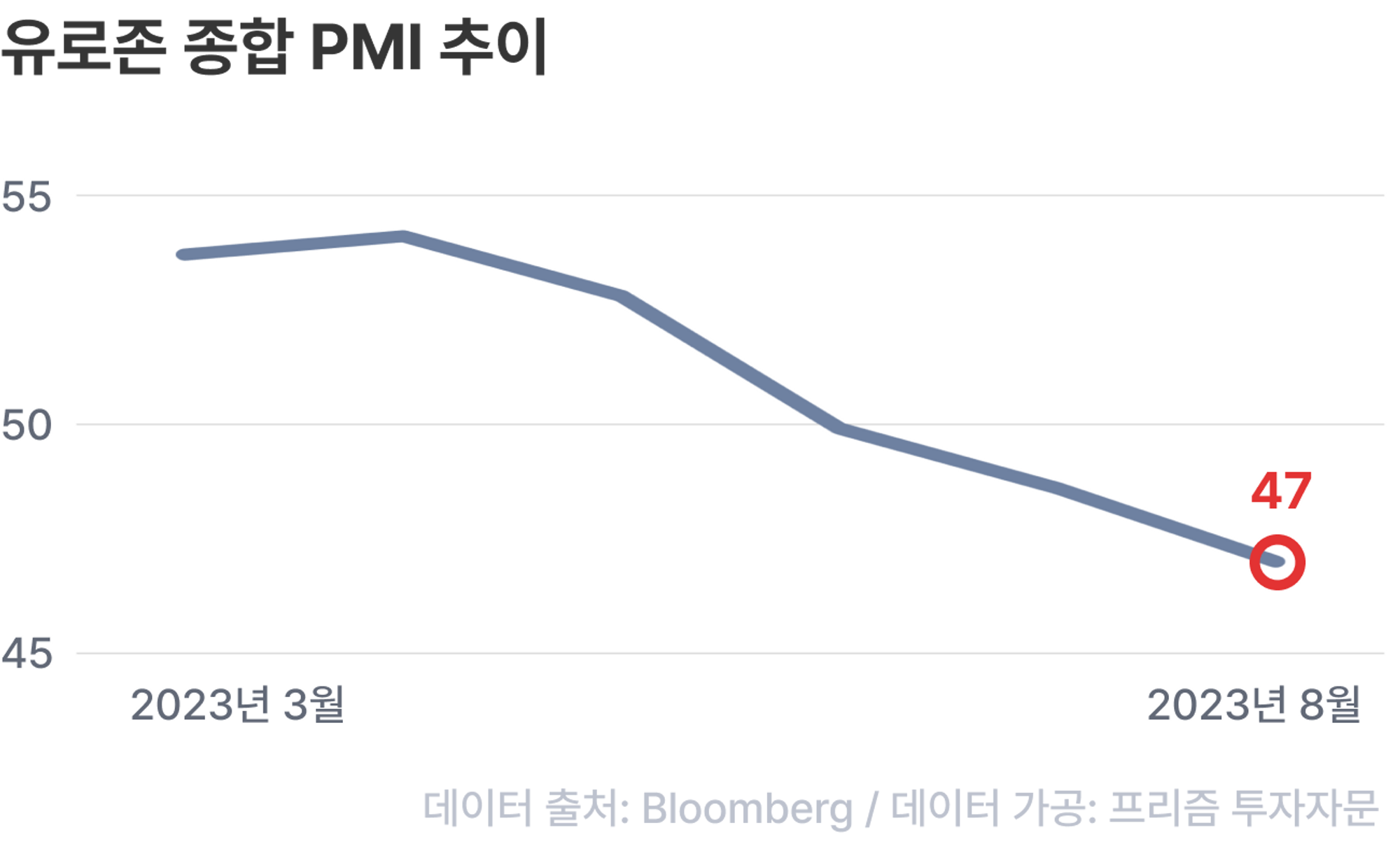 23일(수), 유로존 8월 PMI가 발표되었어요.