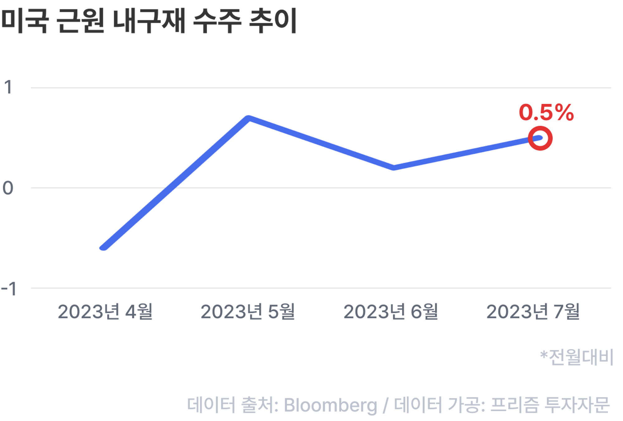 - 미국 7월 근원 내구재 수주 0.5%(MoM) 집계 … 예상치(0.2%) 상회