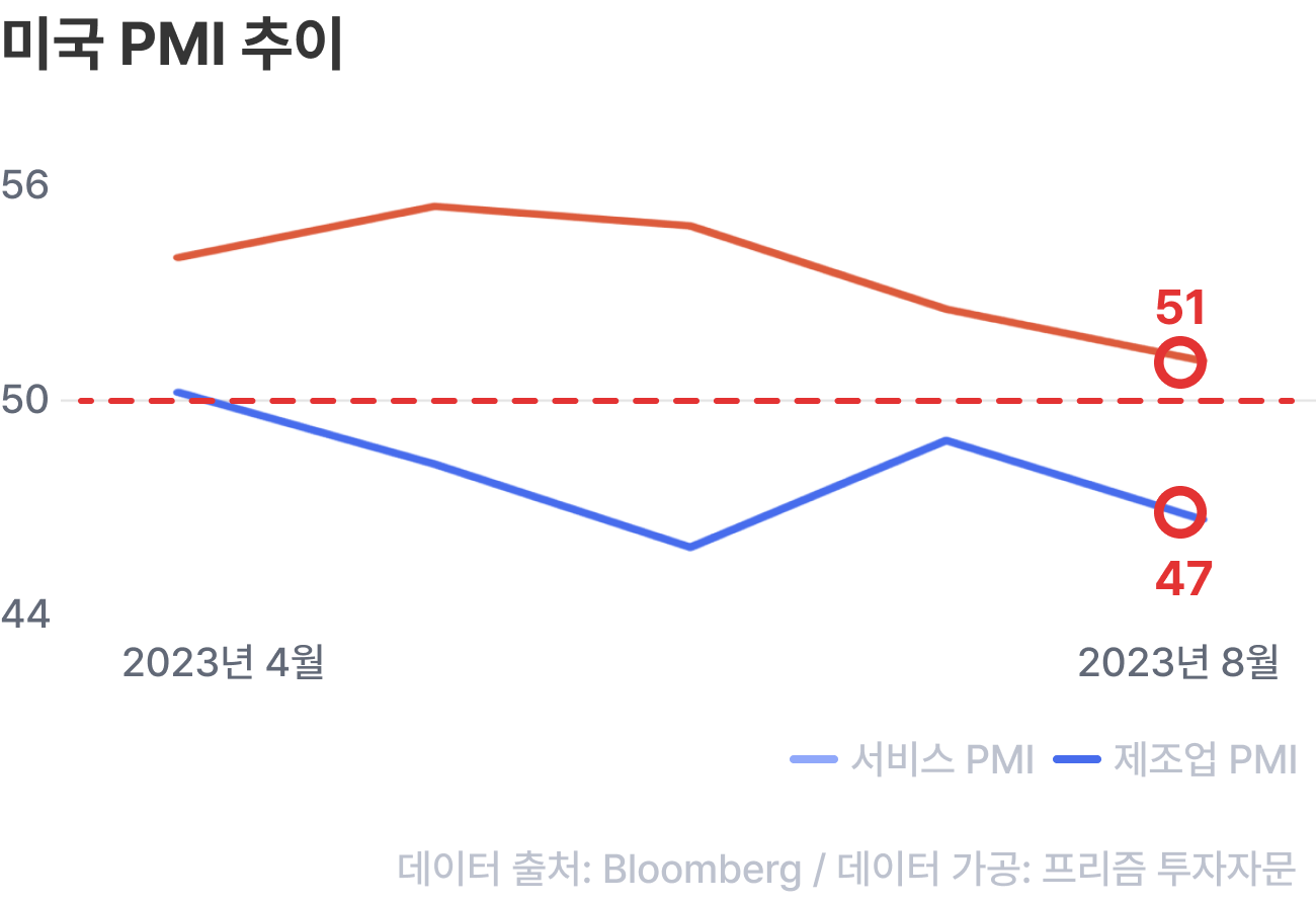 23일(수), 미국 8월 PMI가 발표되었어요.