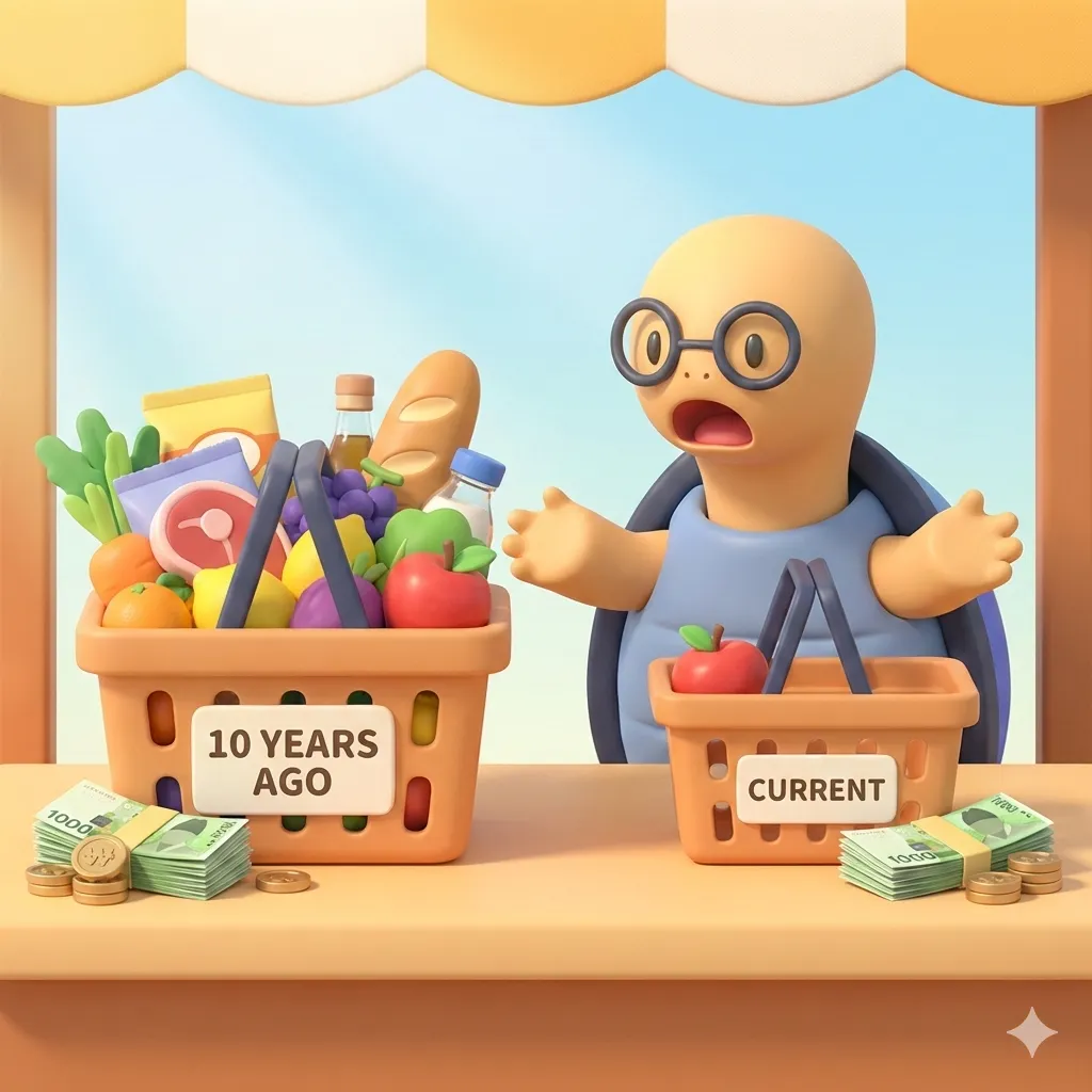 : 10년 전 1,000원으로 살 수 있었던 물건이 지금은 2,000원이 되었다면, 내 돈의 가치는 절반이 된 셈입니다.
