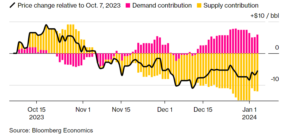 3개월 이상 지속되는 이스라엘-하마스 전쟁이 석유공급에 차질을 일으킬 위험이 높습니다. 물론 아직은 에너지 공급 중단은 일어나지 않았고, 시장에서는 그런 일이 일어나지 않을 것이라고 예상하고 있습니다. 하지만 위험은 커지고 있습니다. 미국과 영국이 예멘에서 공습을 시작한 이후 홍해에서 긴장이 고조되고 있습니다. 이스라엘과 레바논 국경을 따라 매일 총격전이 벌어지고 베이루트에서 하마스 지도자가 암살당하면서 헤즈볼라, 나아가 (헤즈볼라를 지원하는) 이란이 전쟁에 휘말릴 위험이 있습니다. 이라크와 시리아도 점점 더 화약고처럼 보입니다.