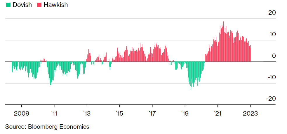 <그림> 연준 발언지수 동향 - 비둘기파로의 변신?