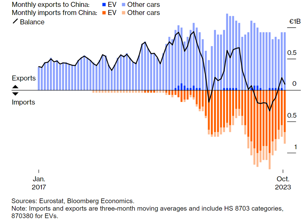 <그림> 중국산 전기차(EV)의 대 유럽 수출 급증으로, 무역흑자 기조 흔들려