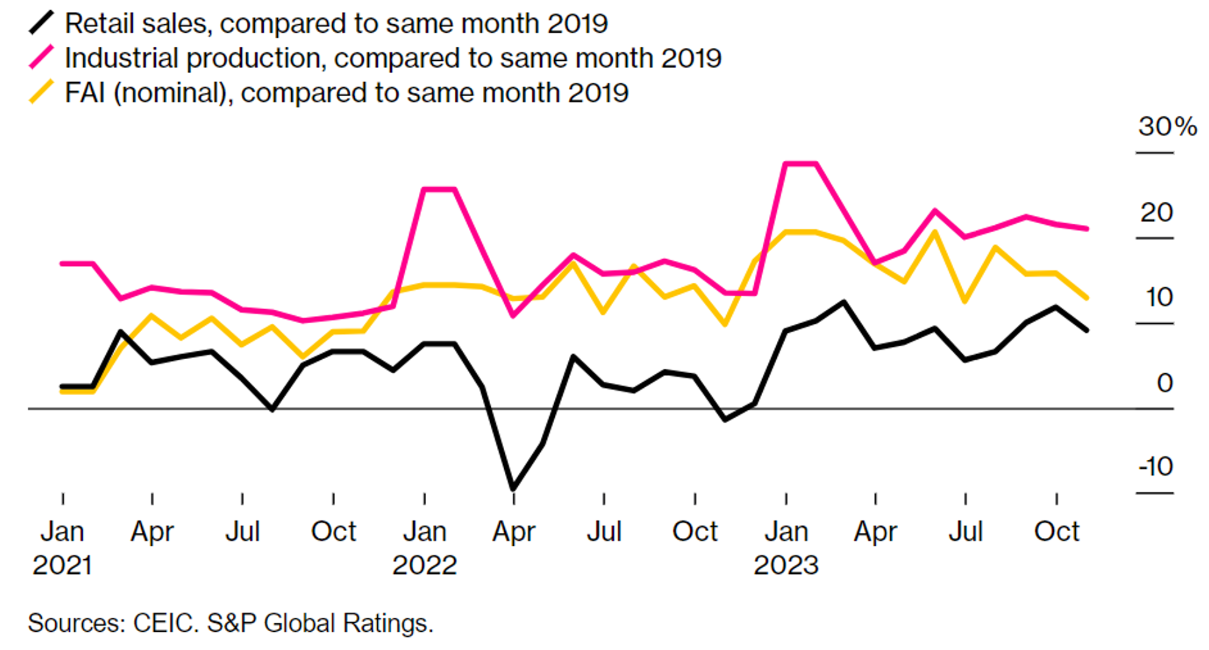 확실한 것은 내년에는 재정 부양책이 더 큰 역할을 할 것이라는 점입니다. 이번 주 초 회의에서 중국 정책 입안자들은 "적절하게 강화된" 재정 조치와 "유연한" 통화 정책을 촉구했습니다. 이는 지난주 24명으로 구성된 당 정치국 회의에서 친성장 입장을 취한 것으로 보이는 당의 메시지를 반영한 것입니다.