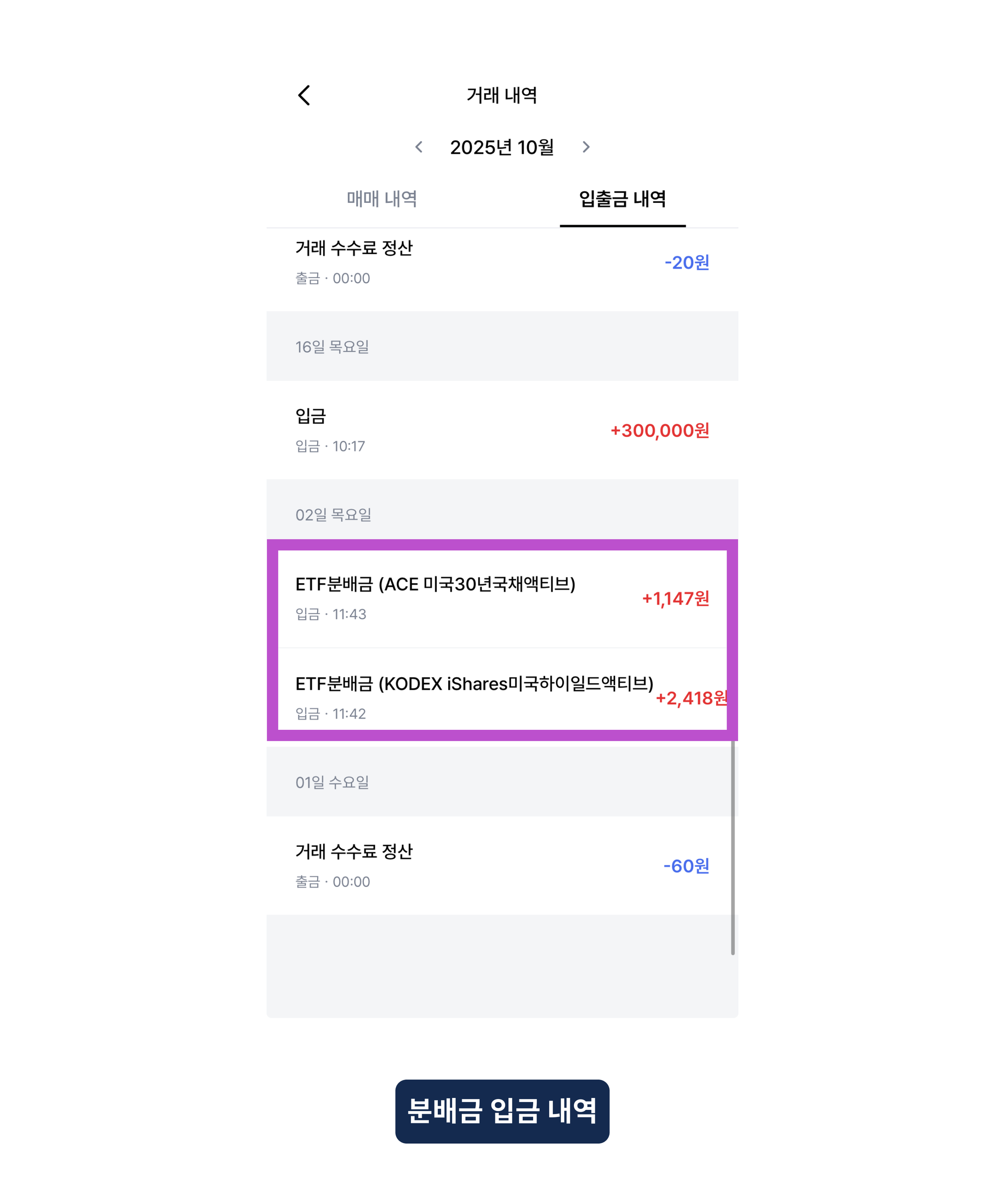분배금은 투자 포트폴리오 내에서 발생한 ETF 배당성 수익으로,